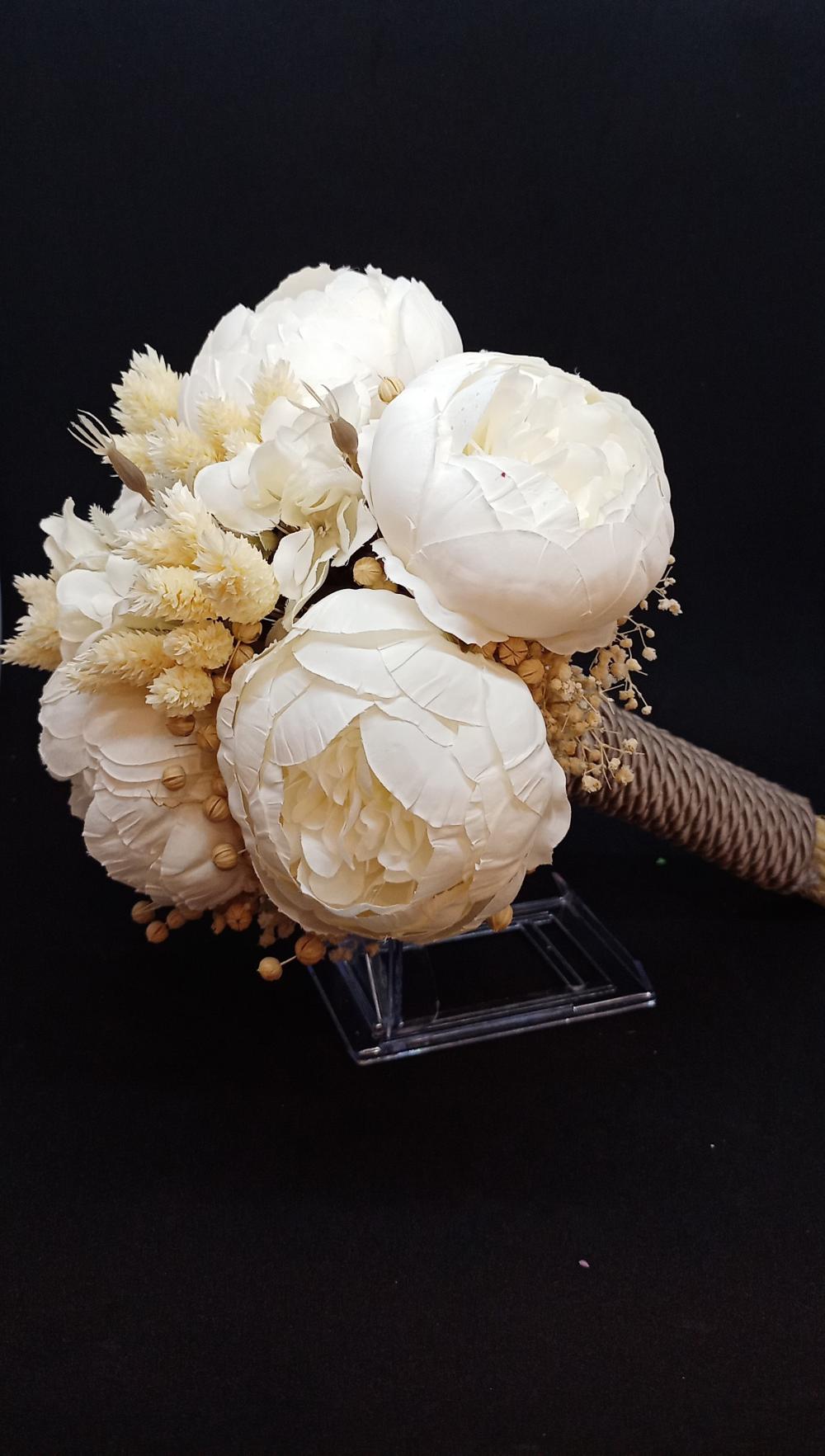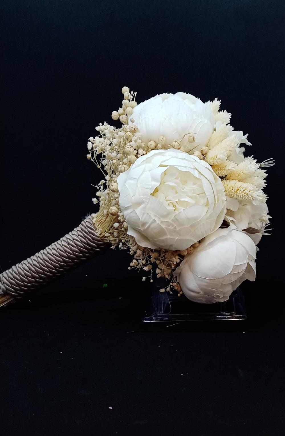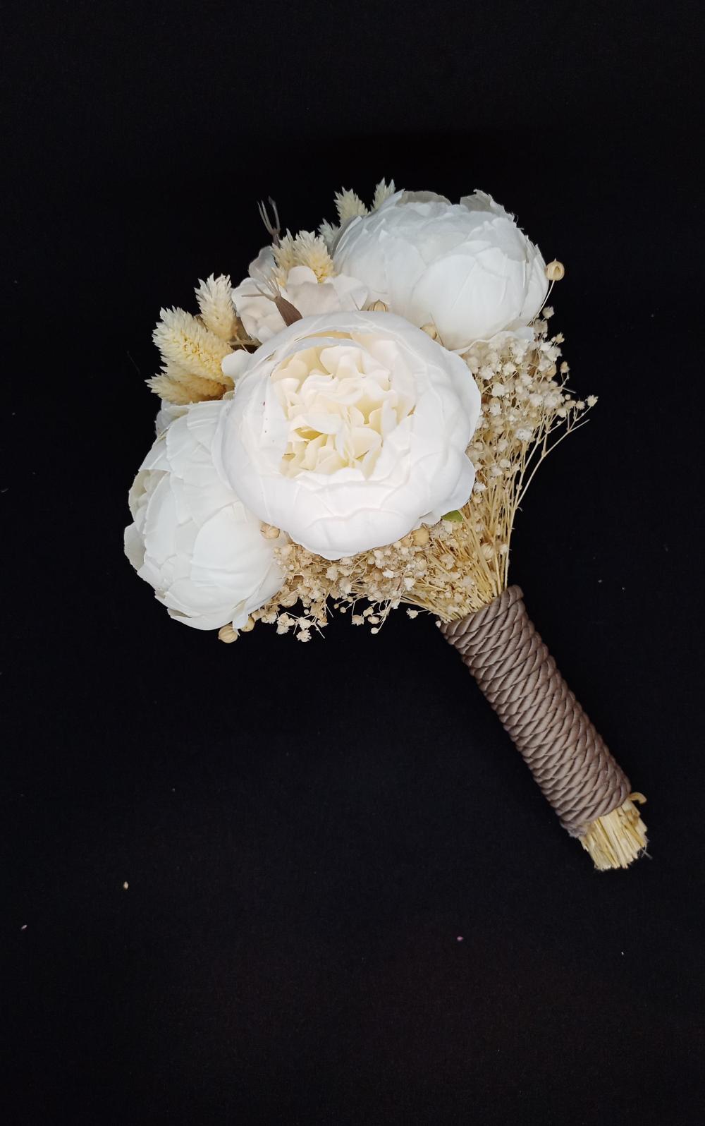 Cipsolarla Süslenmiş Beyaz Şakayik Gelin Buketi