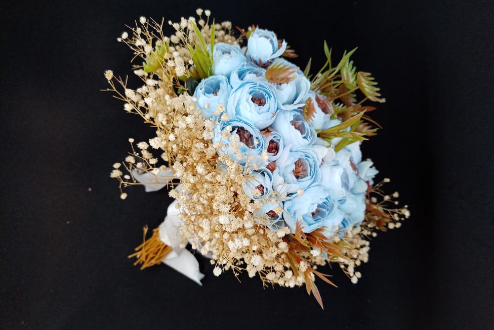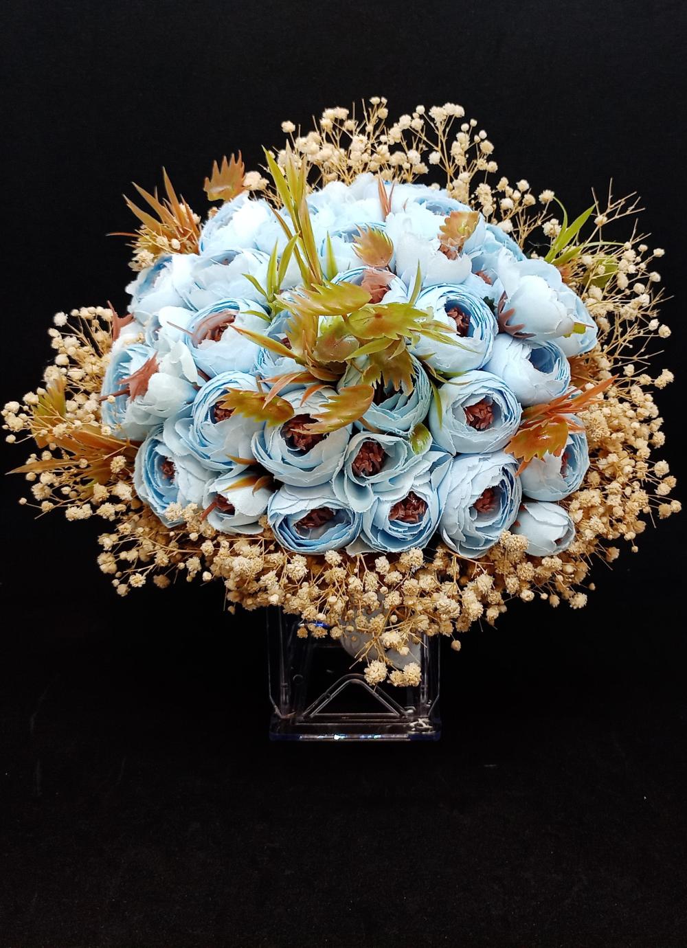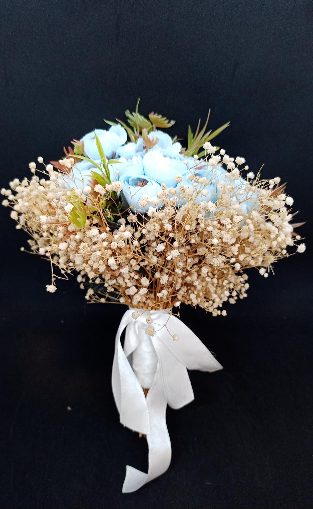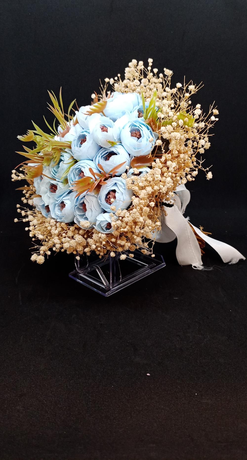 Cipsolarla Süslenmiş Mavi Gül Gelin Buketi