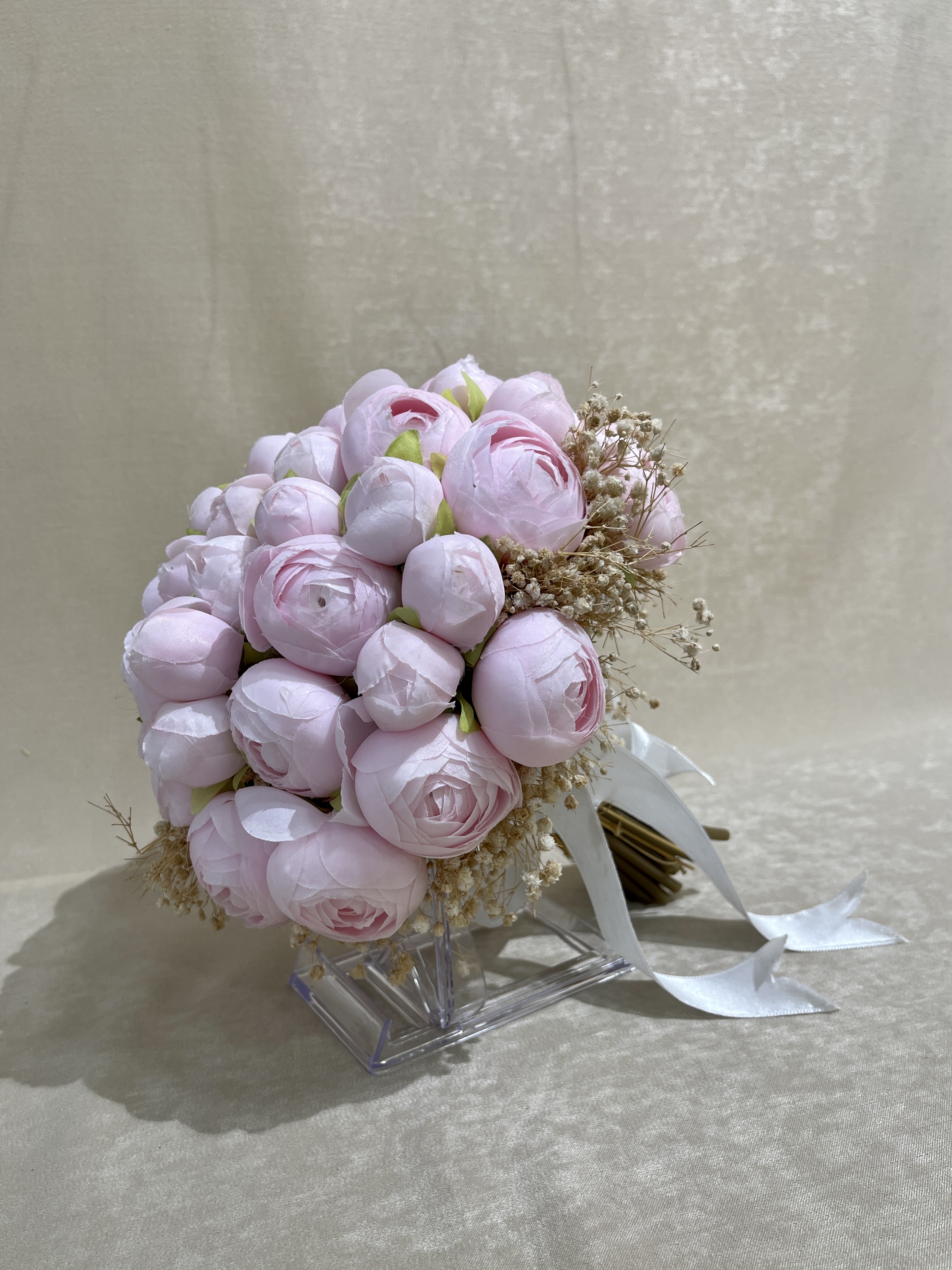 Cipsolarla Süslenmiş Pembe Gül Gelin Buketi .