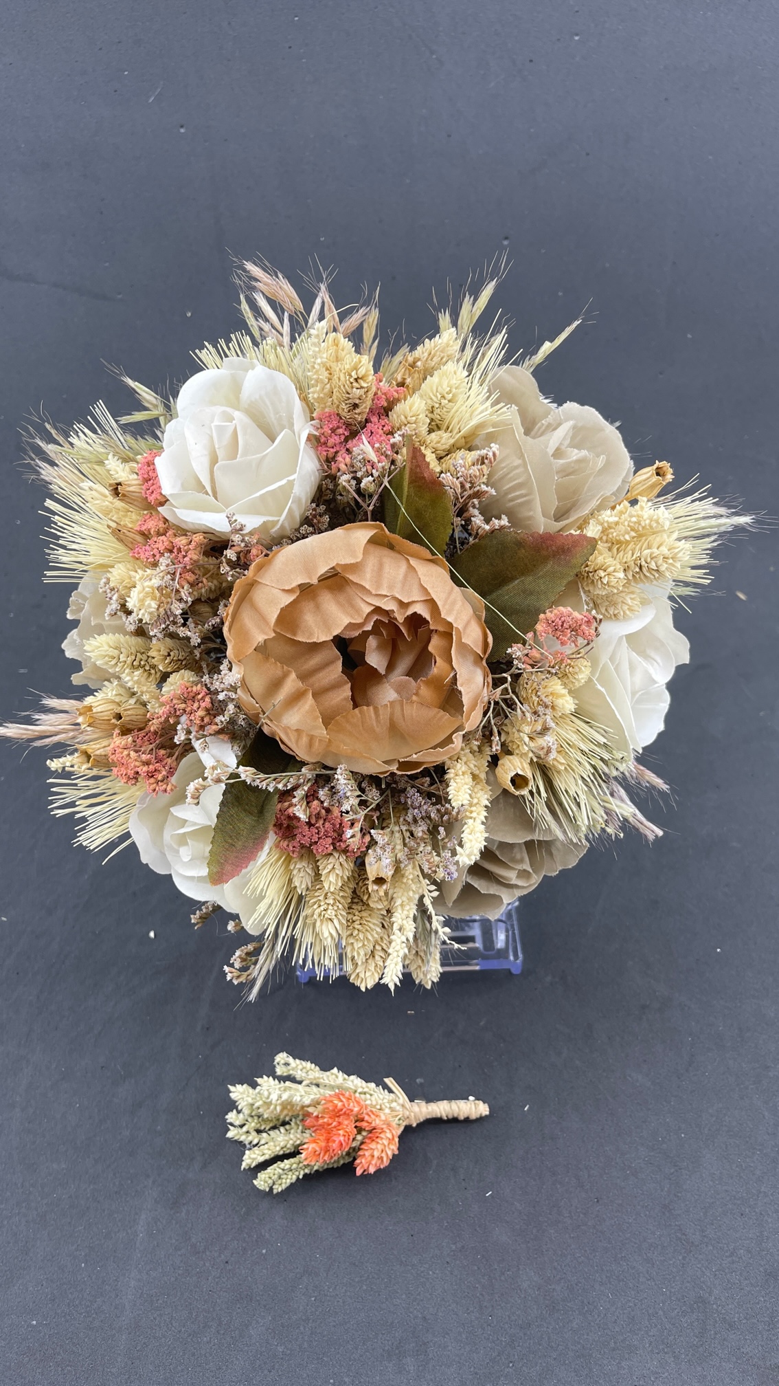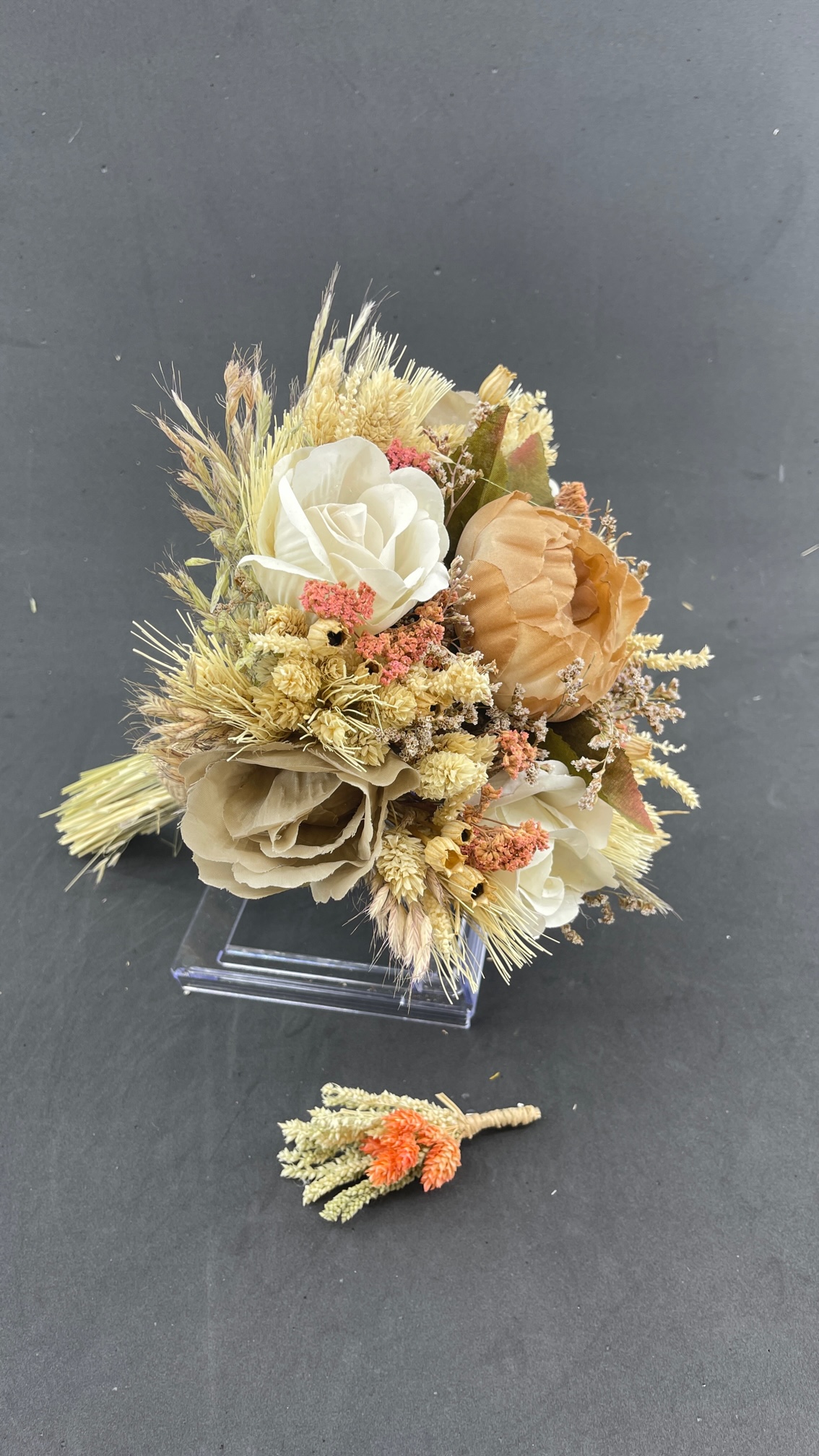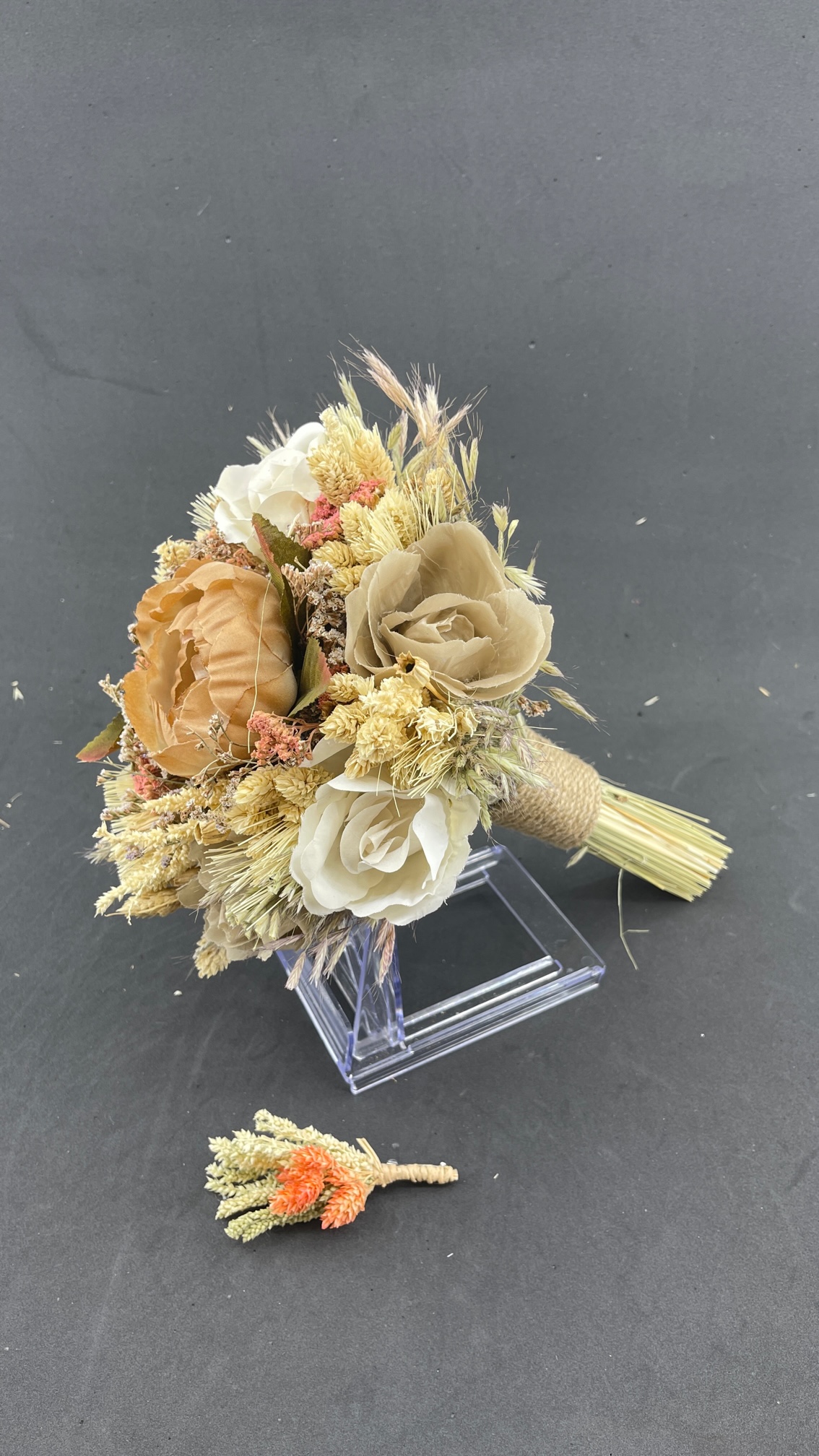 Çok Renkli Aranjman Gelin Buketi Ve Damat Yaka Çiçeği