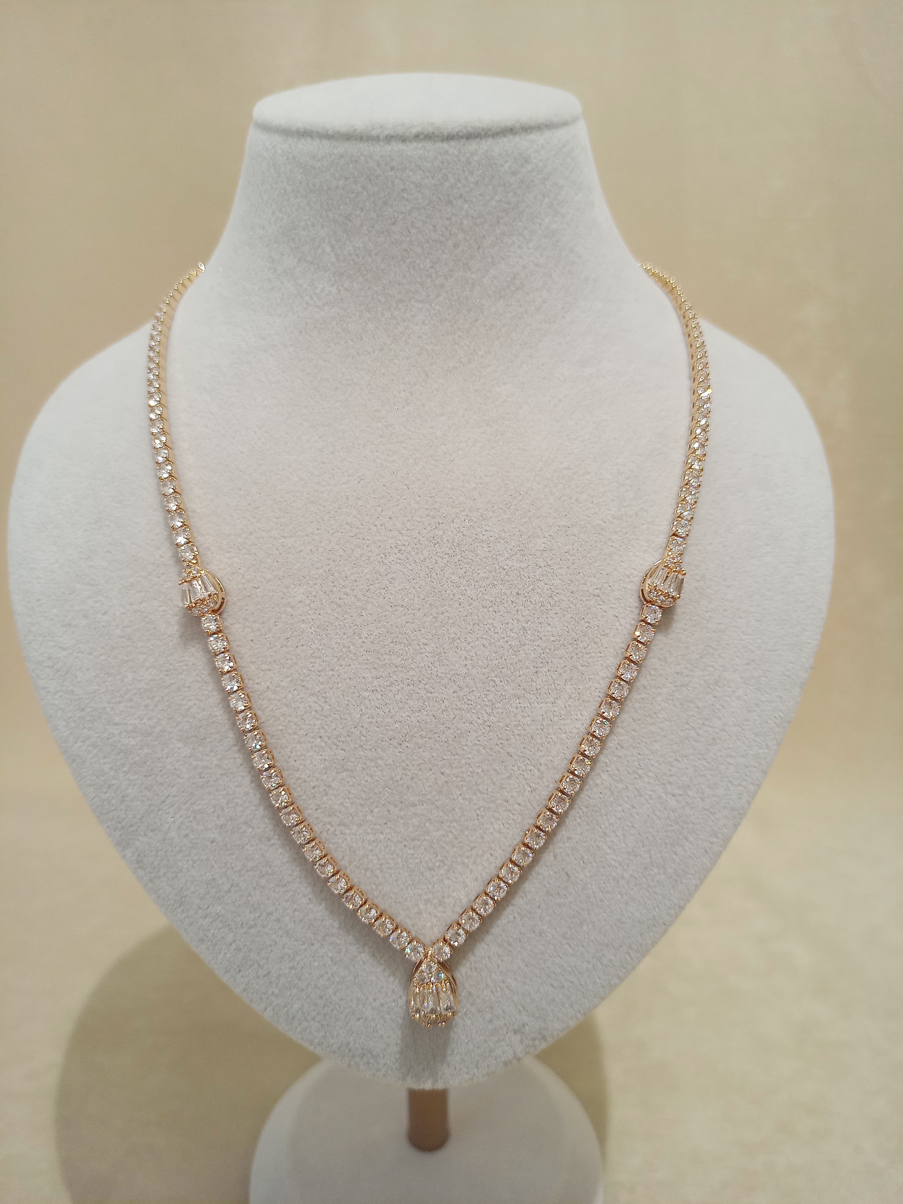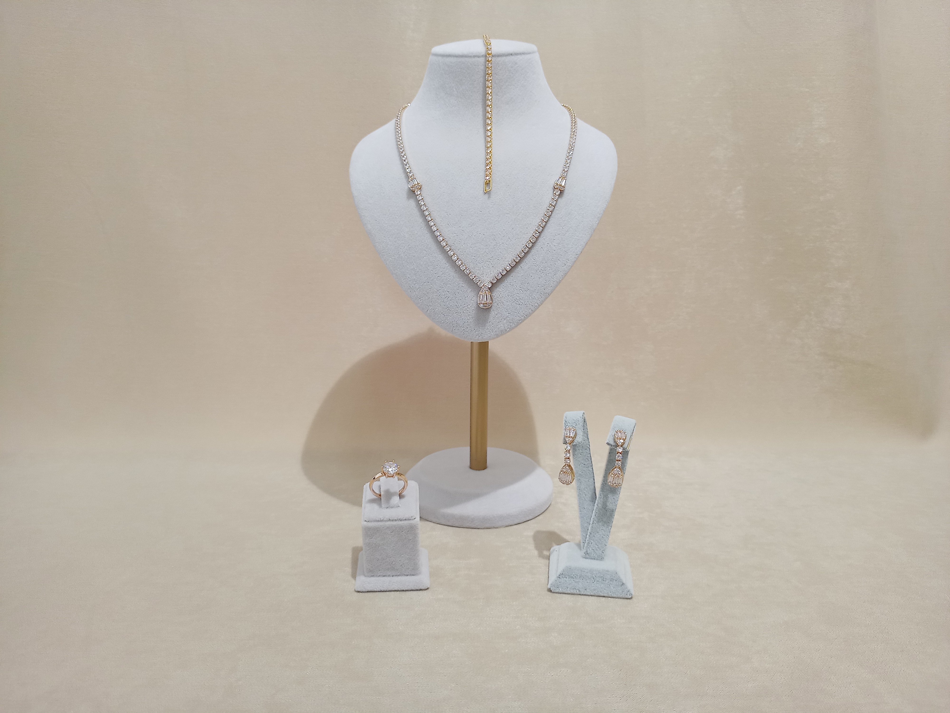 Etrafında su yolu taşlarla devam eden damla baget model gelin takı seti .Setimiz üçlü baget kolye, tekli baget küpe ve su yolu bileklikten oluşmaktadır.Tek Taş Yüzük yanında hediye olarak gönderim sağlanmaktadır.