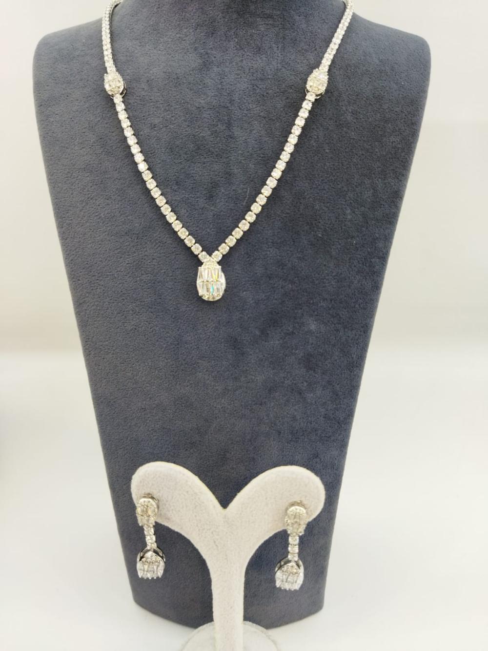 Damla Kristallere Sahip Gümüş Renk Takı Seti