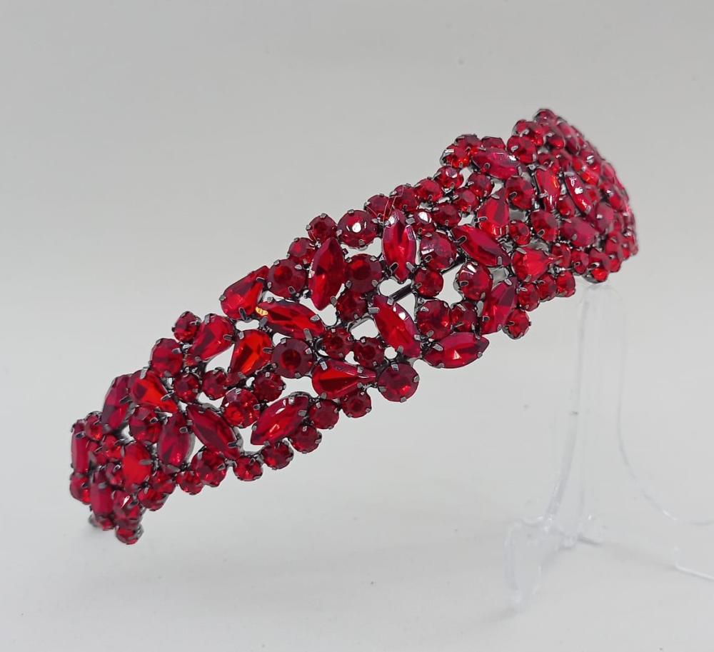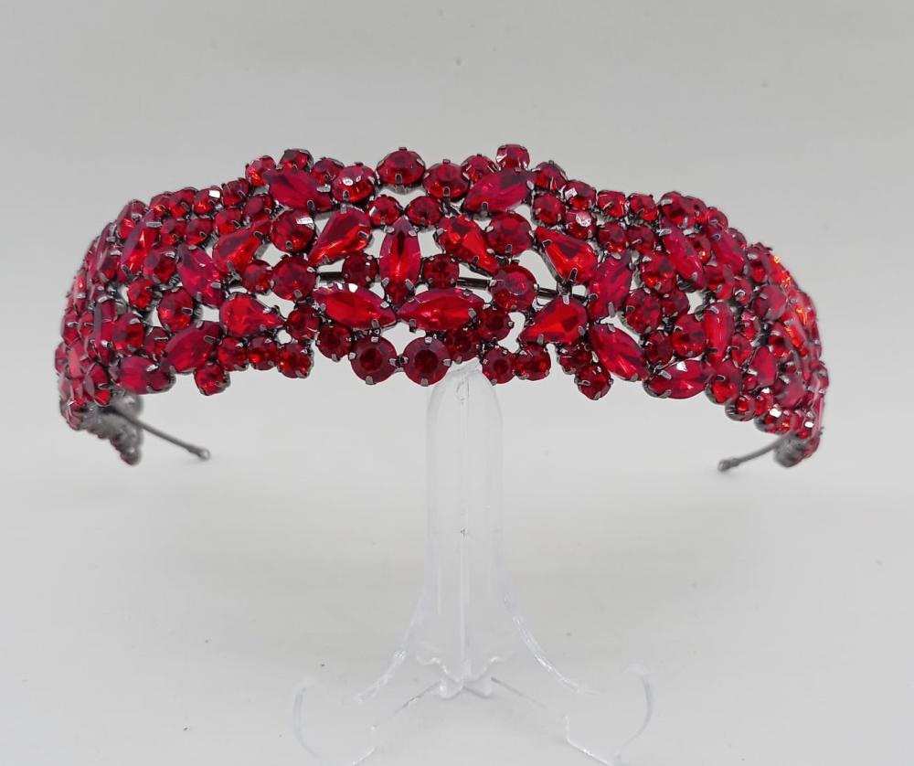 Damla ve Tektaş Kombineli Bandana Formunda Kırmızı Gelin Kına Tacı