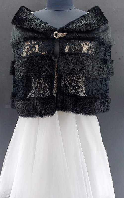 Dantel Detaylarına Sahip Broşlu Gelin Etol Kürk Bolero