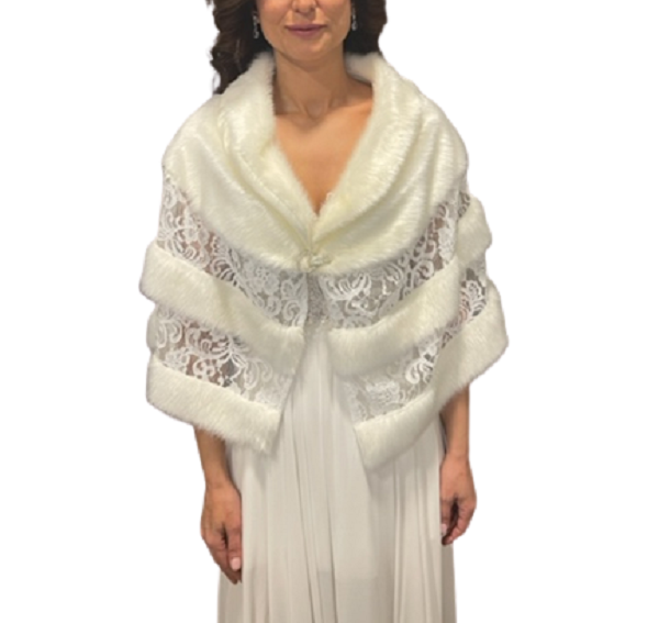Dantel Detaylarına Sahip Broşlu Gelin Etol Kürk Bolero