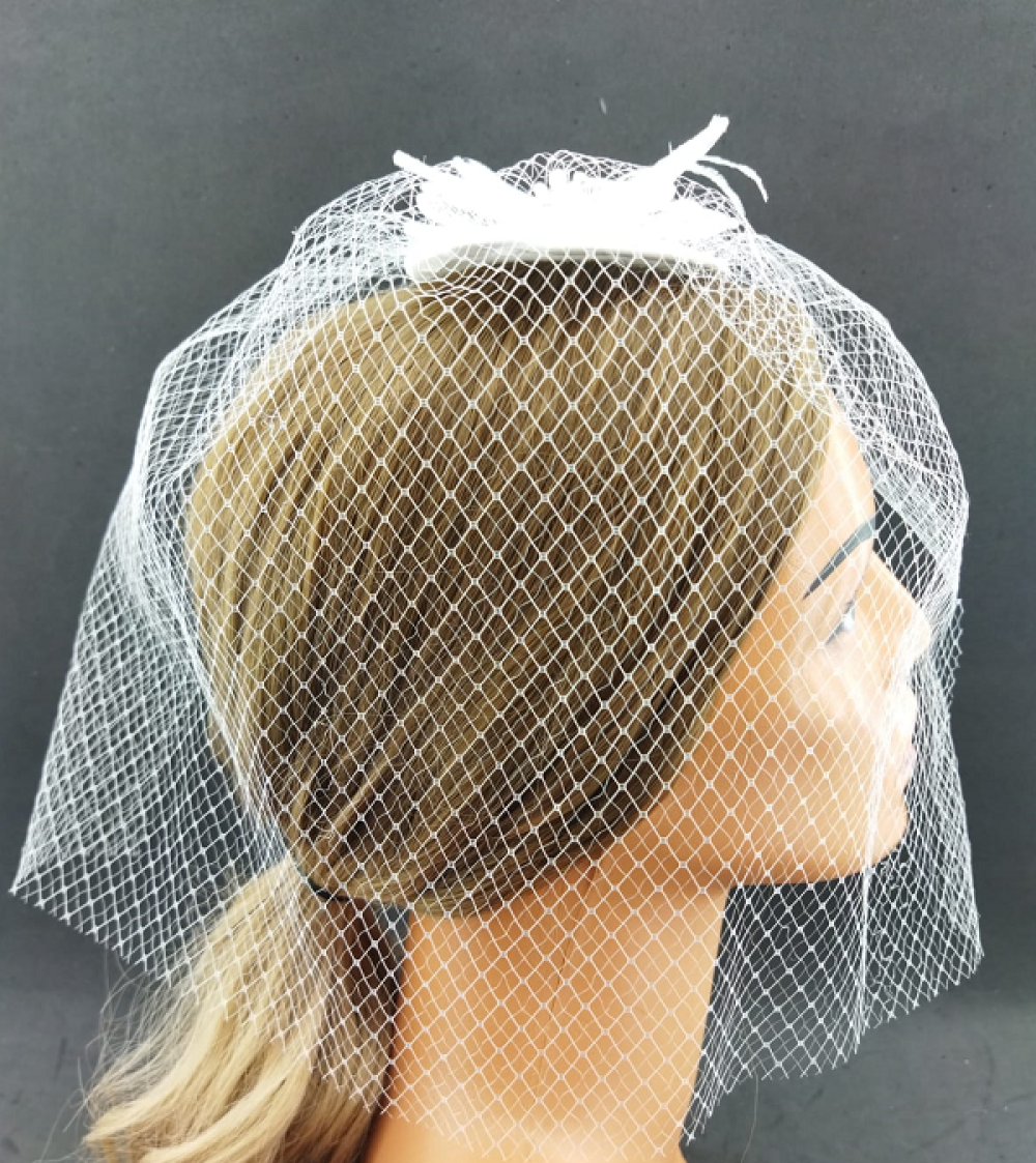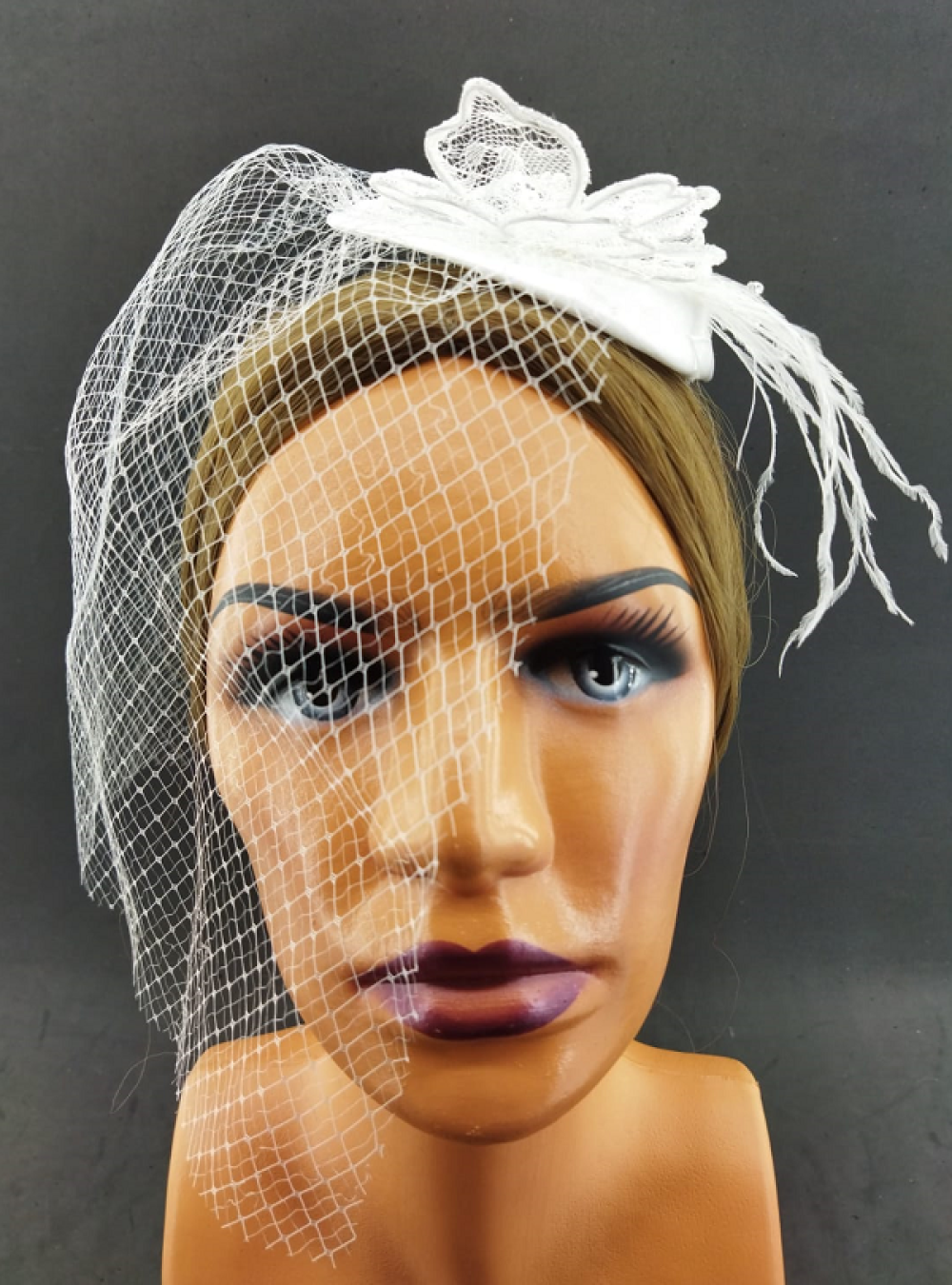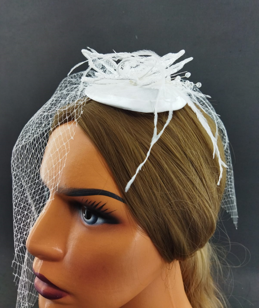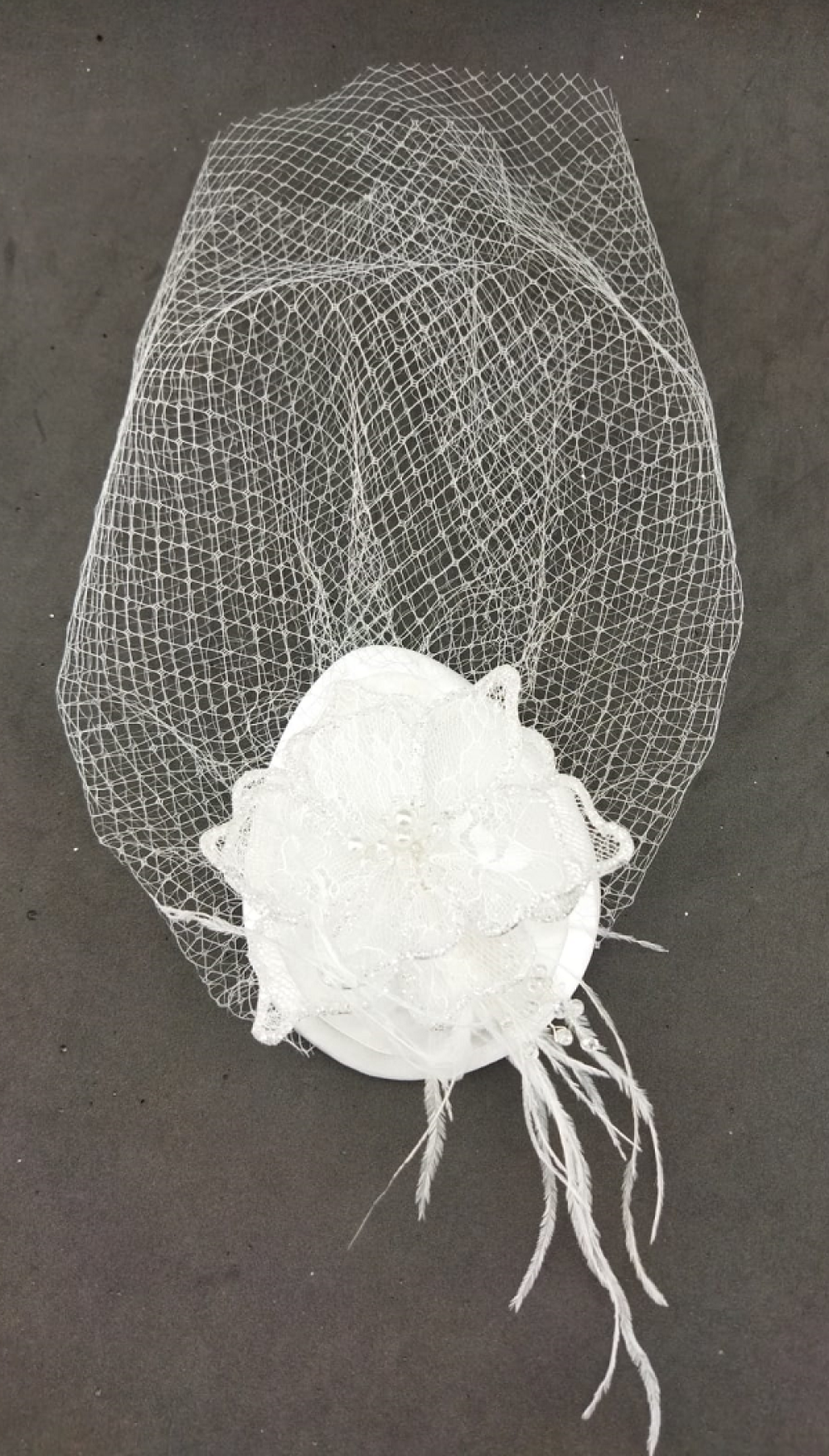 Dantel Detaylı İnci Tüylere Sahip Beyaz Vualet Şapka Nikah Kepi