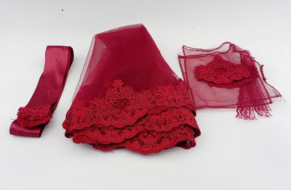 Dantel Detaylı Koyu Kırmızı Kına Örtüsü Seti