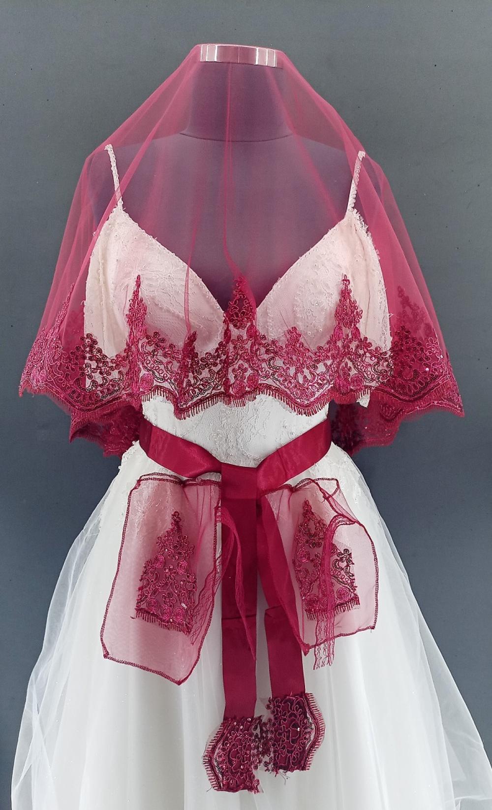 Dantel İşlemeli Koyu Kırmızı Kına Örtüsü Seti