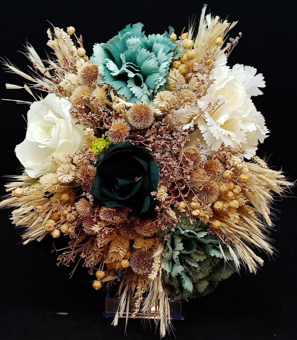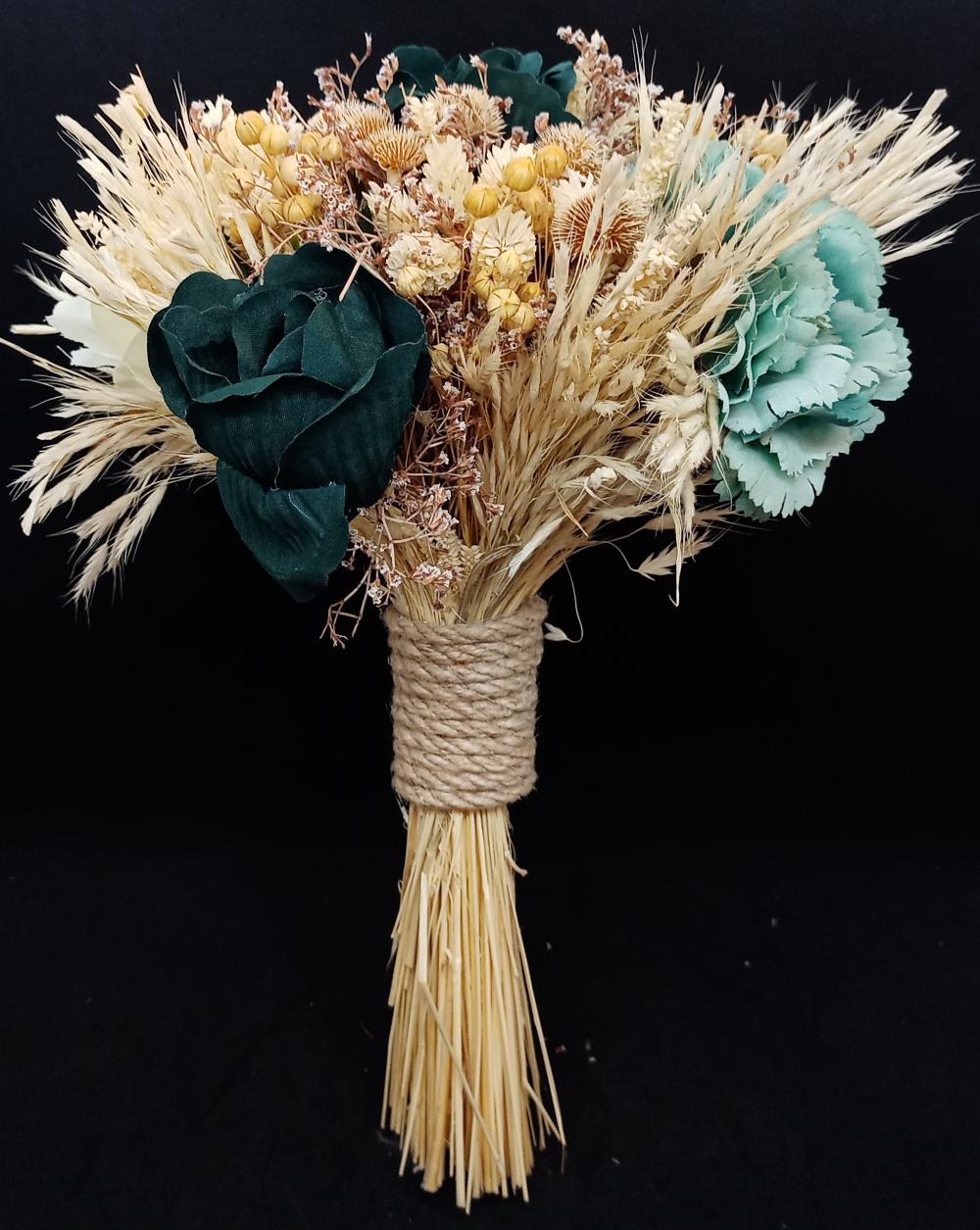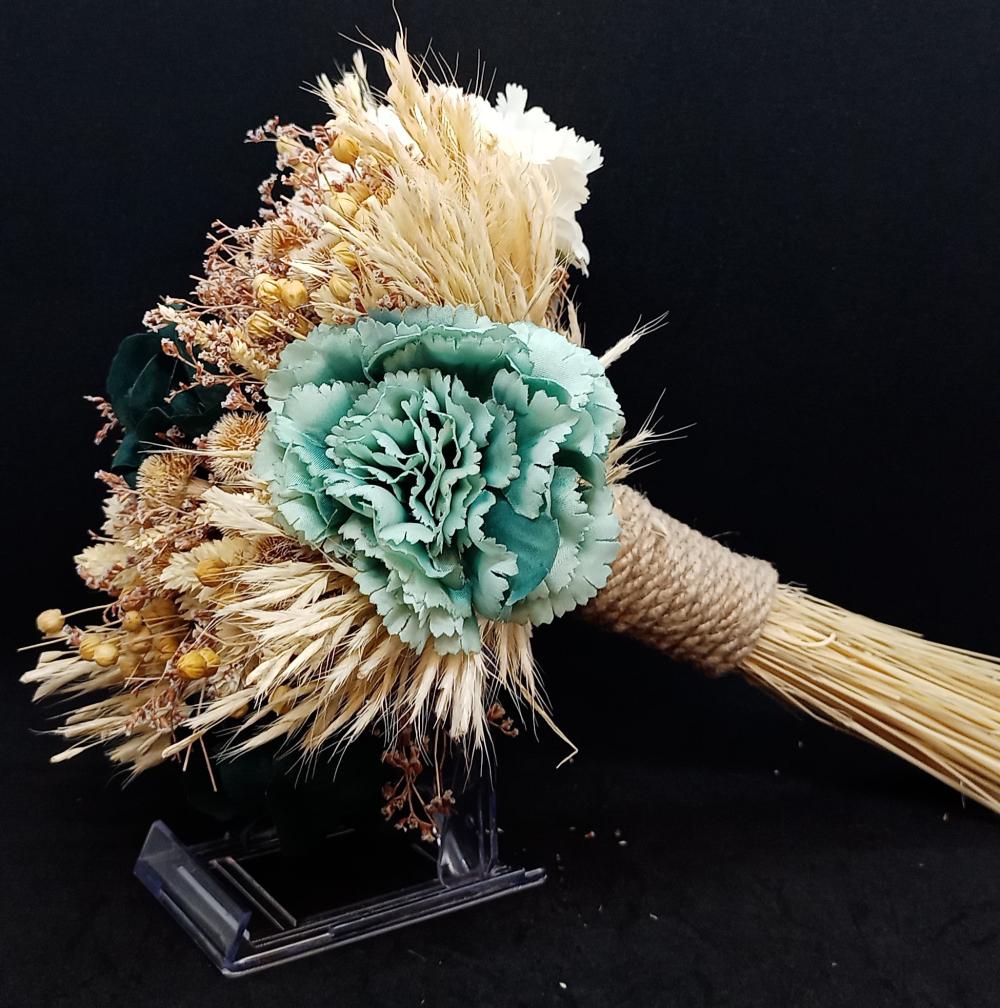 Deve Dikeni Detaylı Gül Ve Karanfilden Oluşan Gelin Buketi