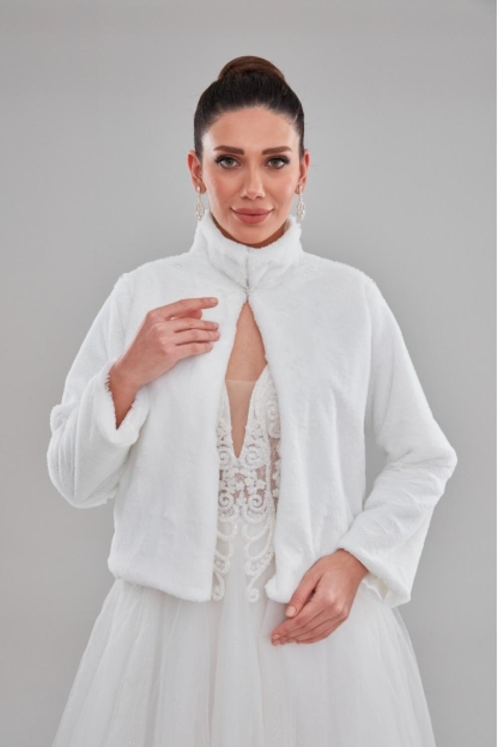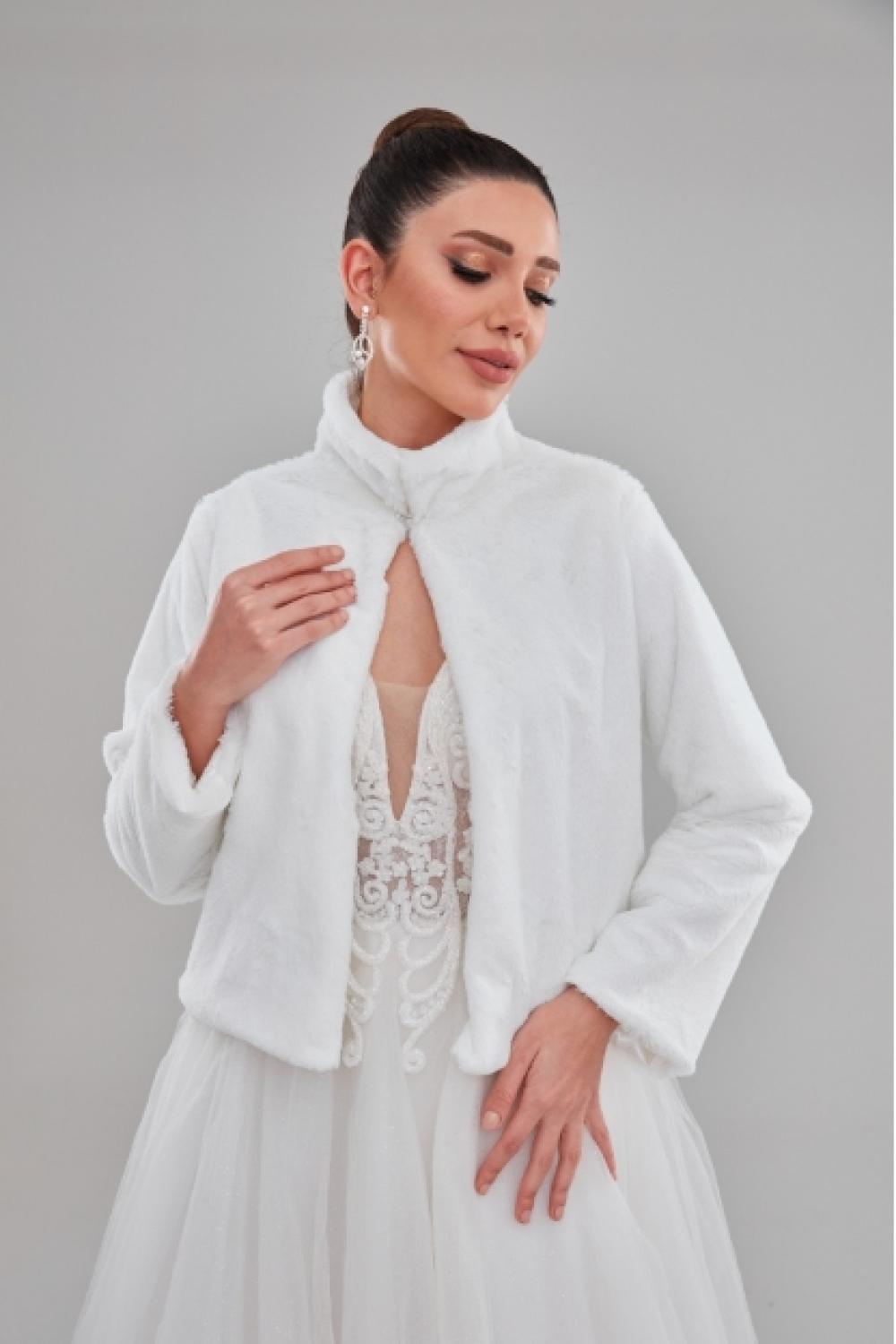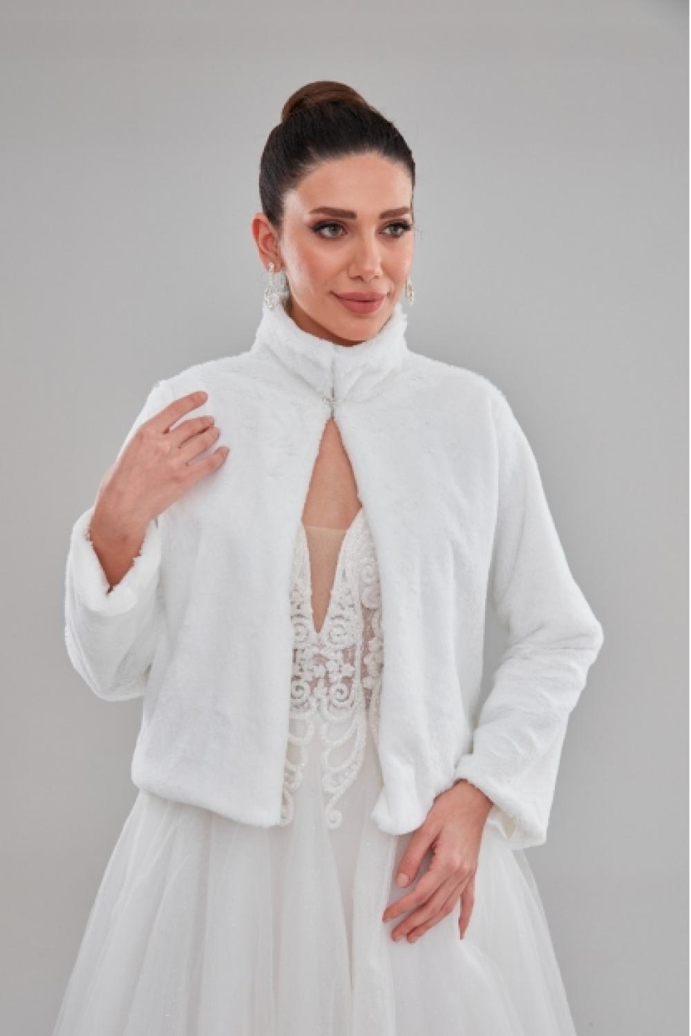Dik Yaka Uzun Kol Beyaz Gelin Etol Kürk Bolero