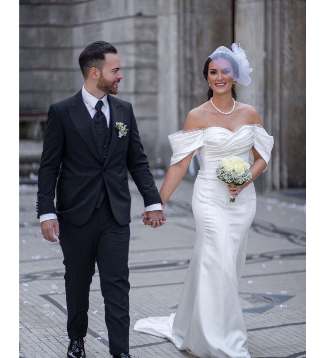 Drape Detaylı İpek Saten Balık Gelinlik