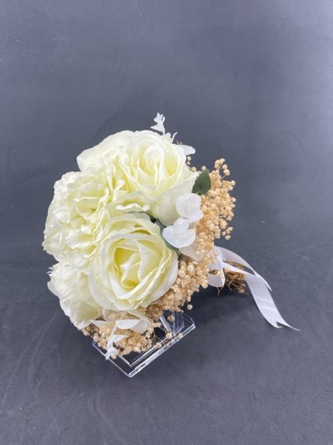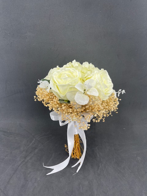 Ekru Cipsolarla ve Beyaz çiçeklerle Süslenmiş Gül Gelin Buketi