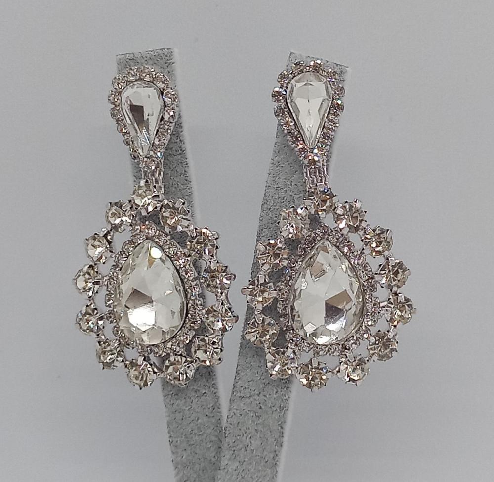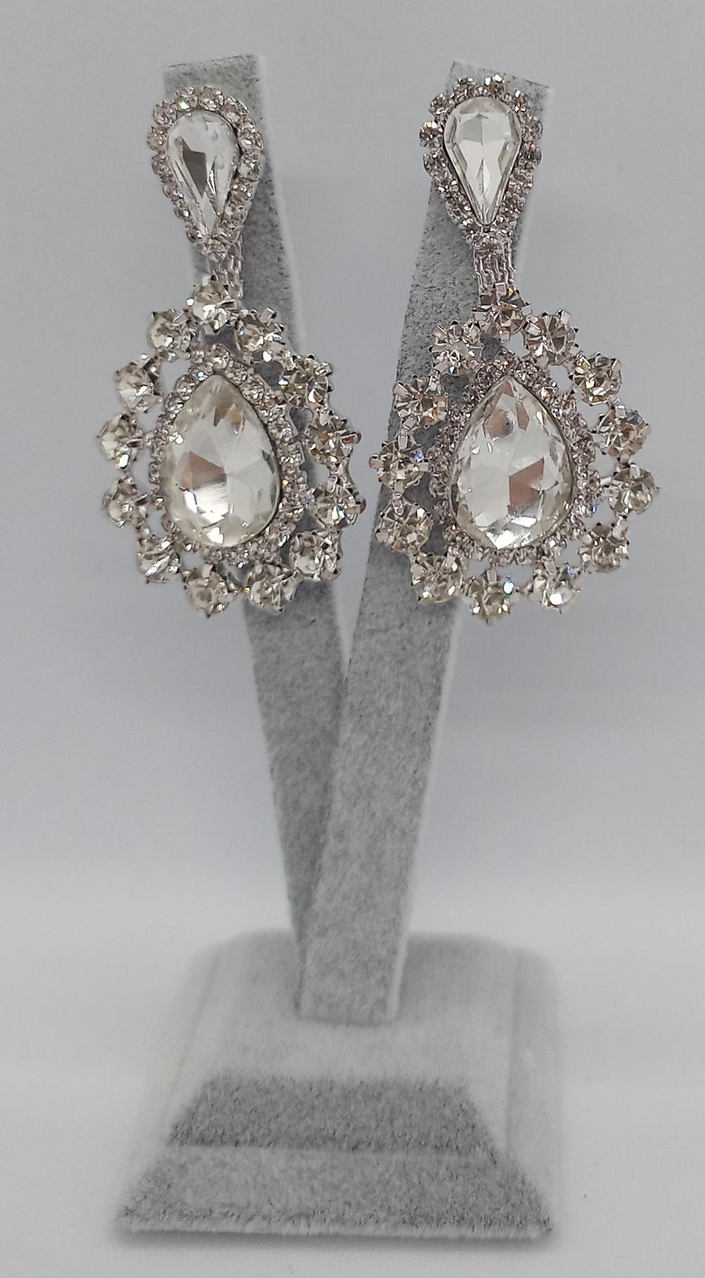 Etrafı Taşlarla Çevrili Elmas Detayı Olan Gelin Küpesi
