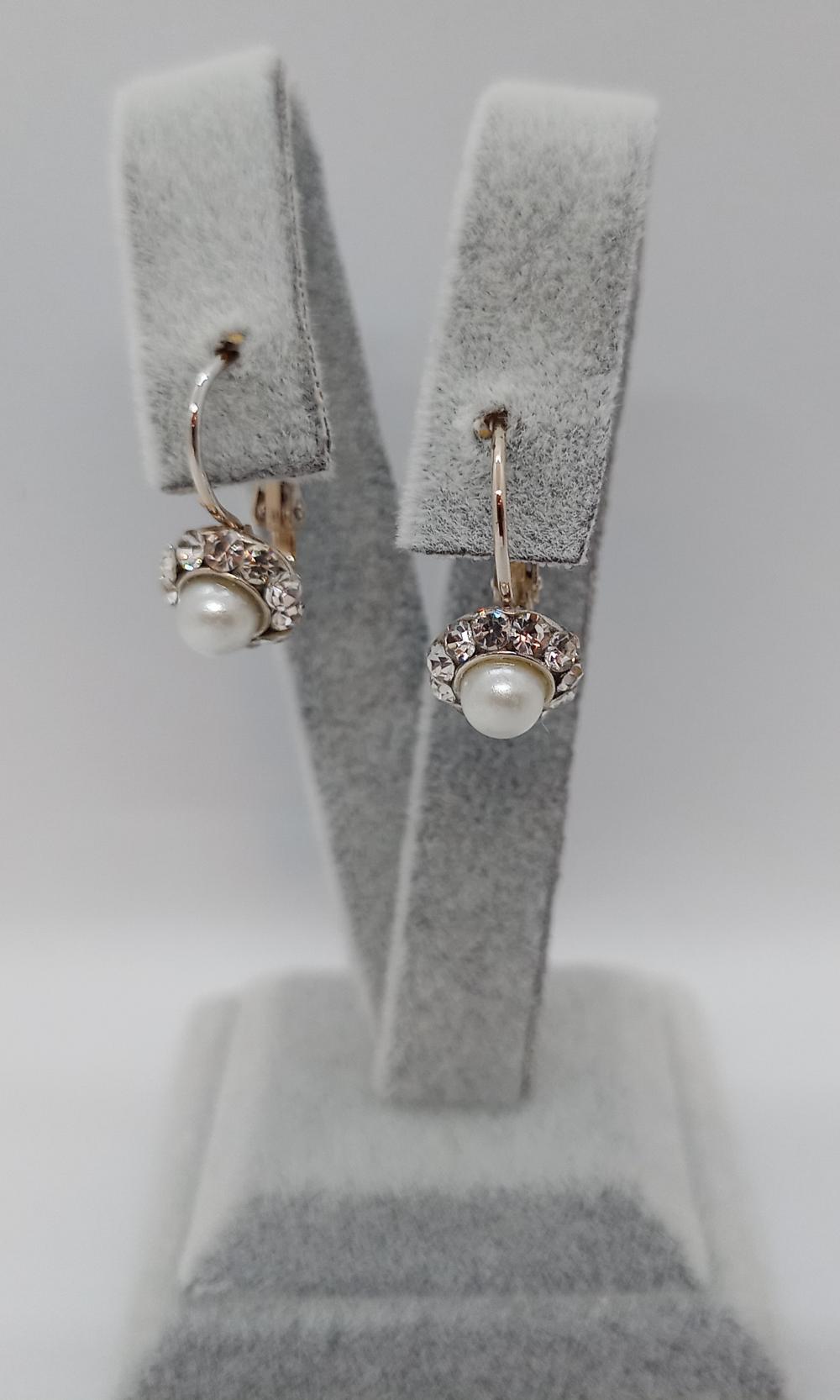 Etrafı Taşlarla Çevrili İnci Detaylı Gelin Küpesi