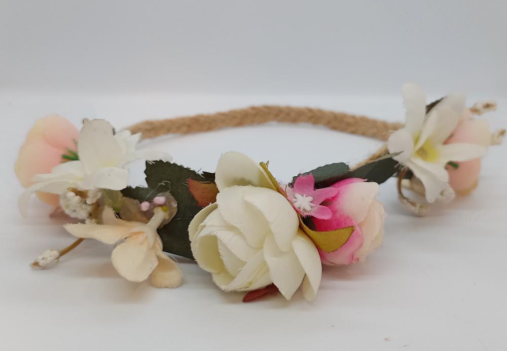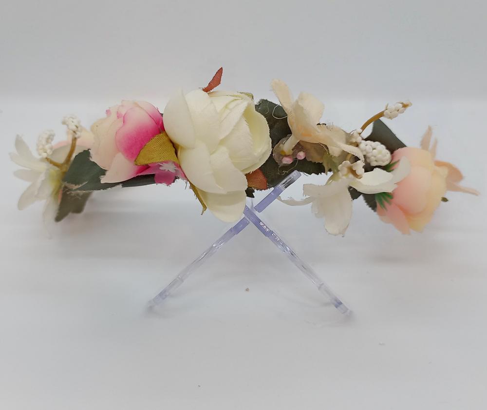 Yapay çiçeklerle oluşturulmuş çiçekli taç.