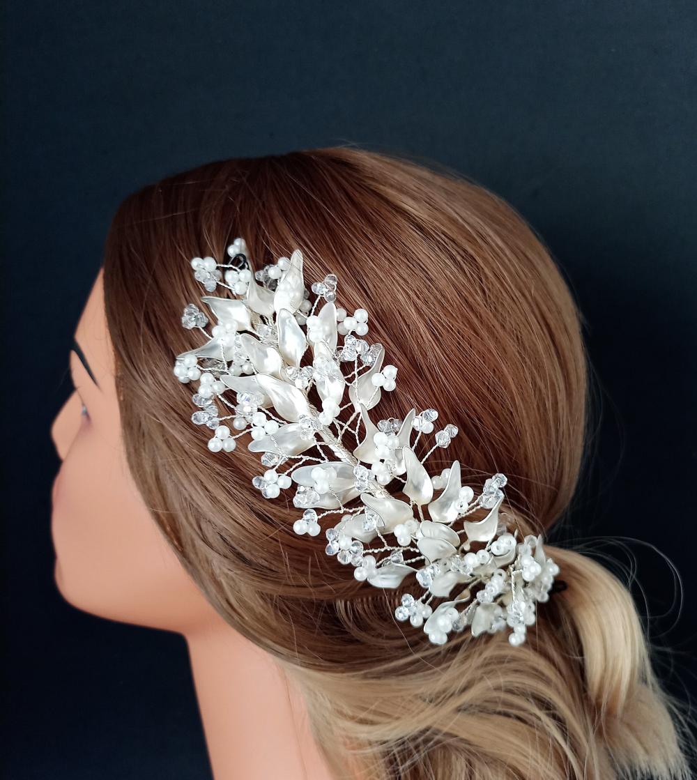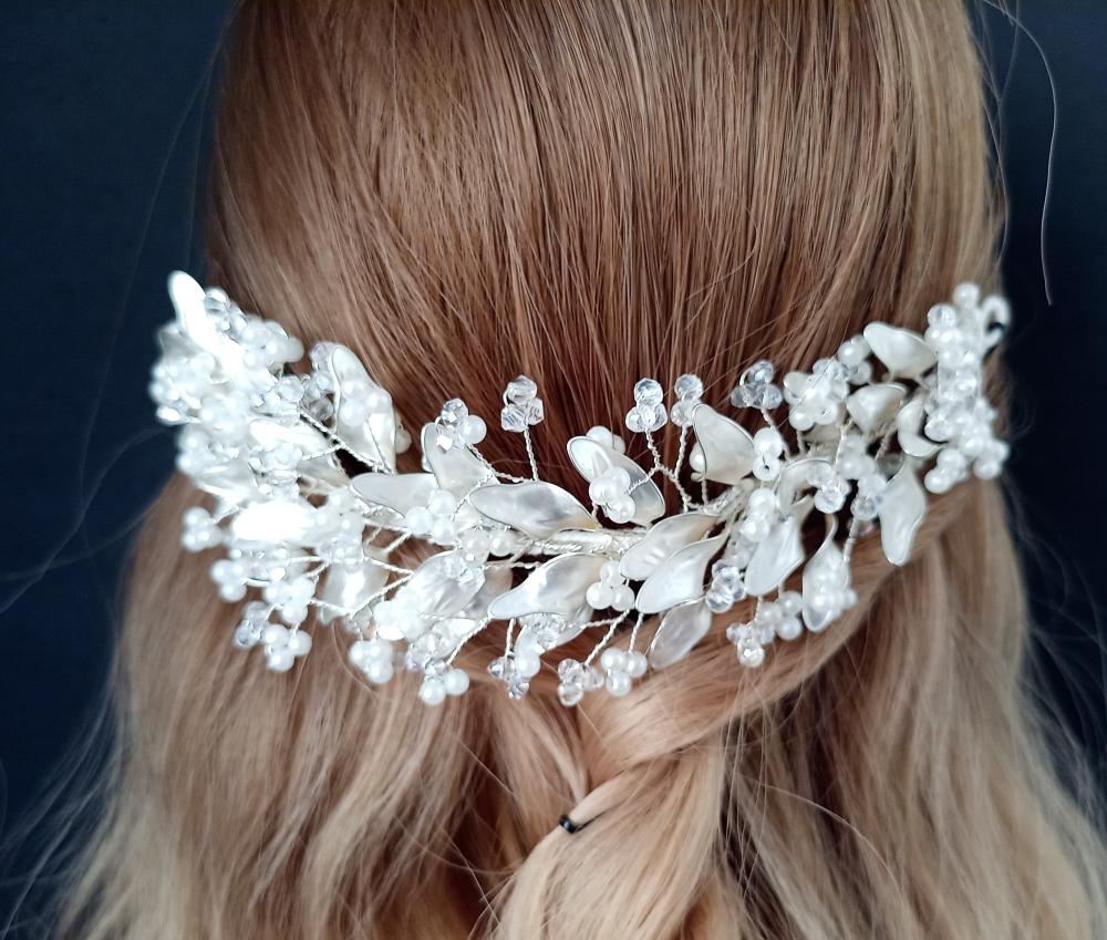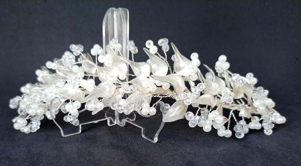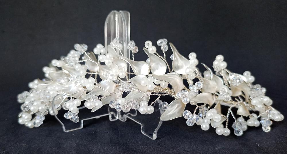Gala Tarzı Detayları Olan Sedef Kristal Ve İncilerden Oluşan Gelin Tacı