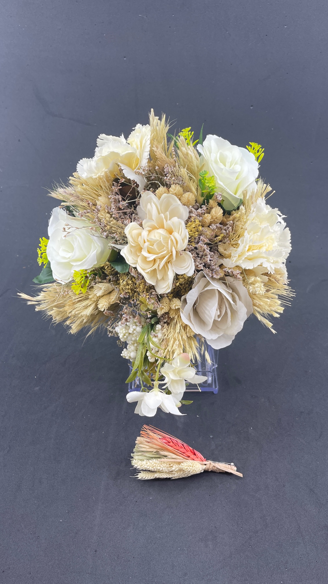 Gardenya Gül Yabani Karanfilden oluşan Ekru Gelin Buketi Ve Damat Çiçeği