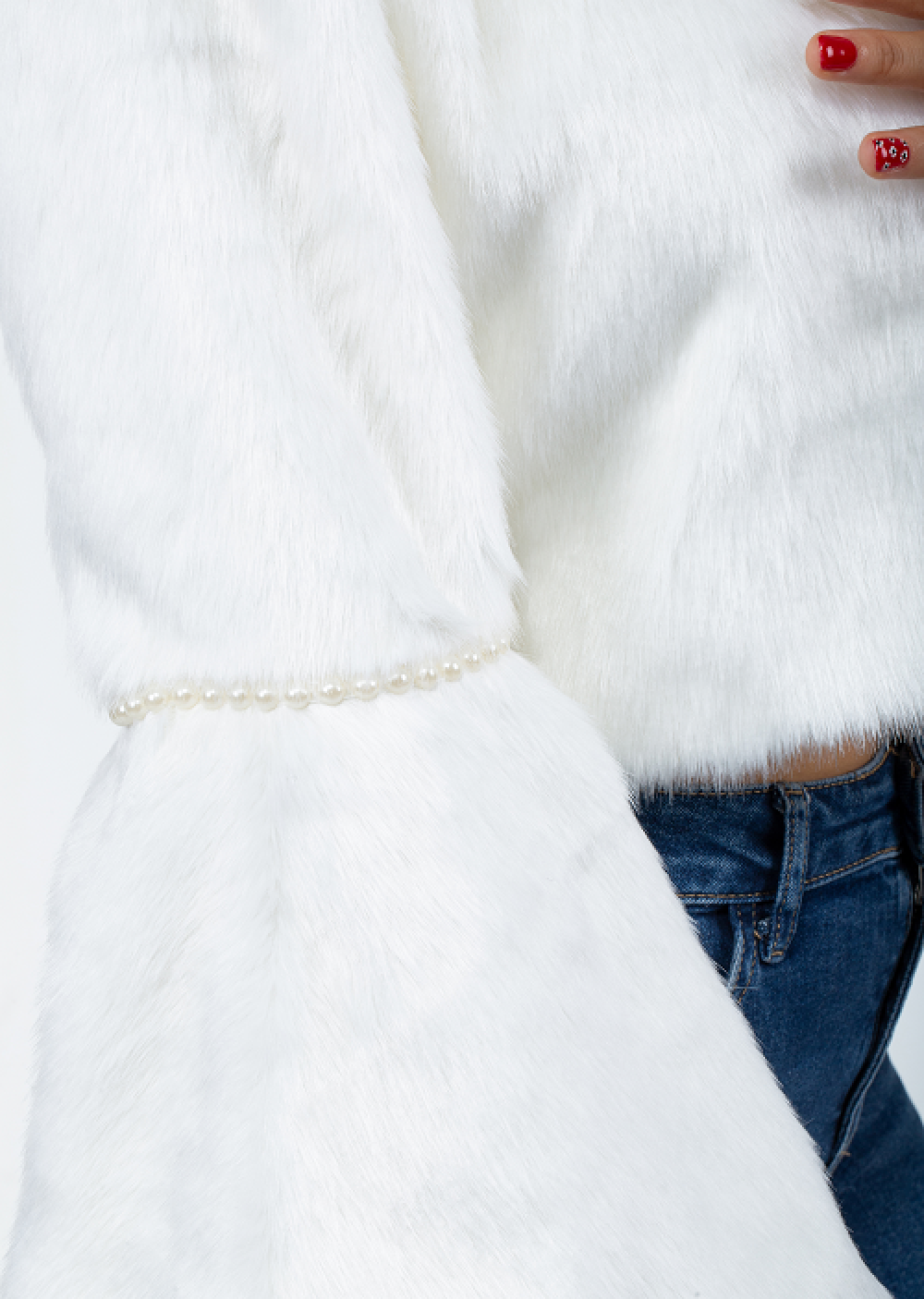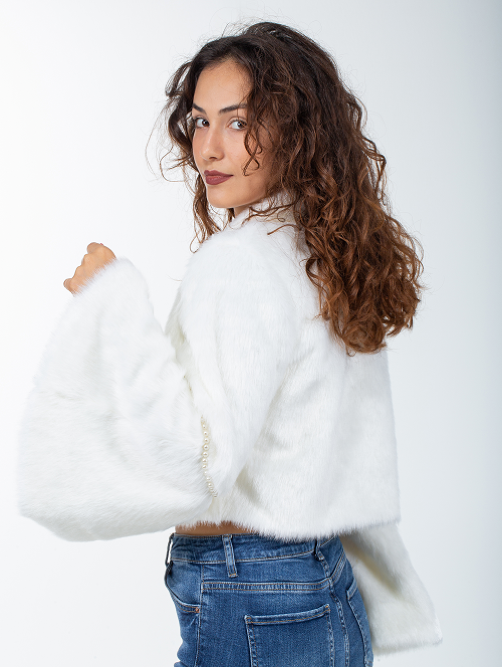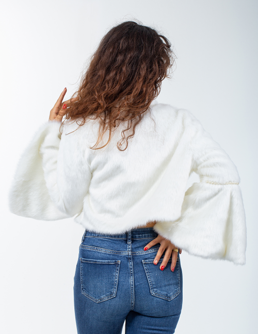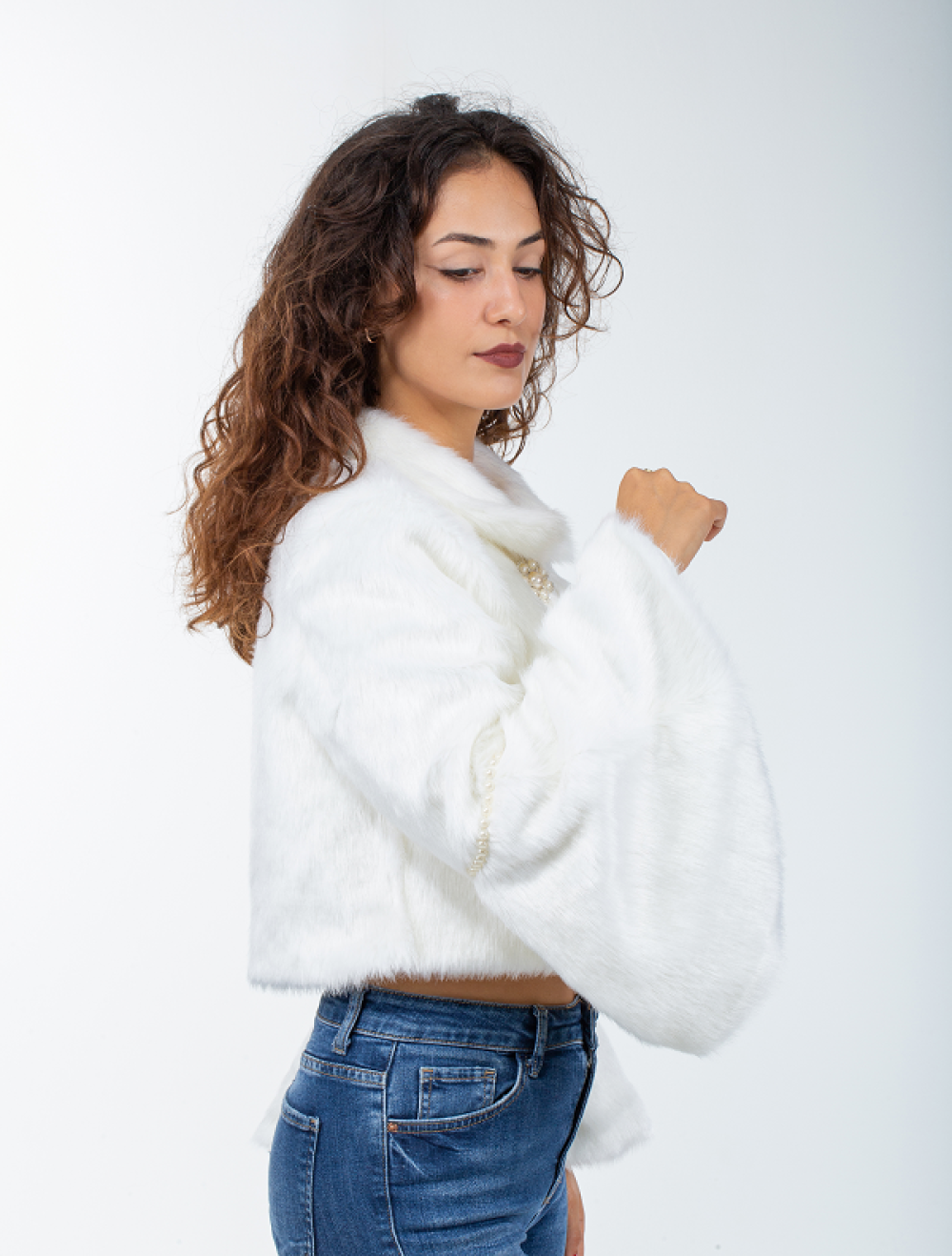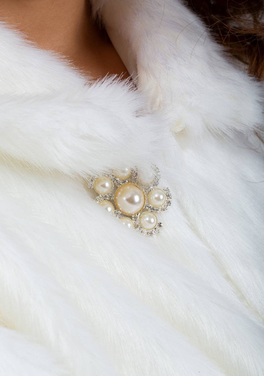 Geniş Kollu İnci Ve Broş Detaylarına Sahip Gelin Etol Kürk Bolero