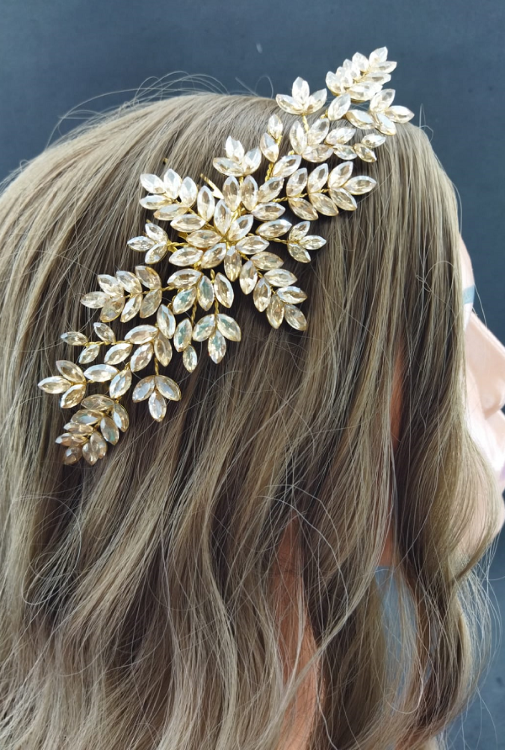 Gold Renk Kristal Taşlı Şık Gelin Tokası