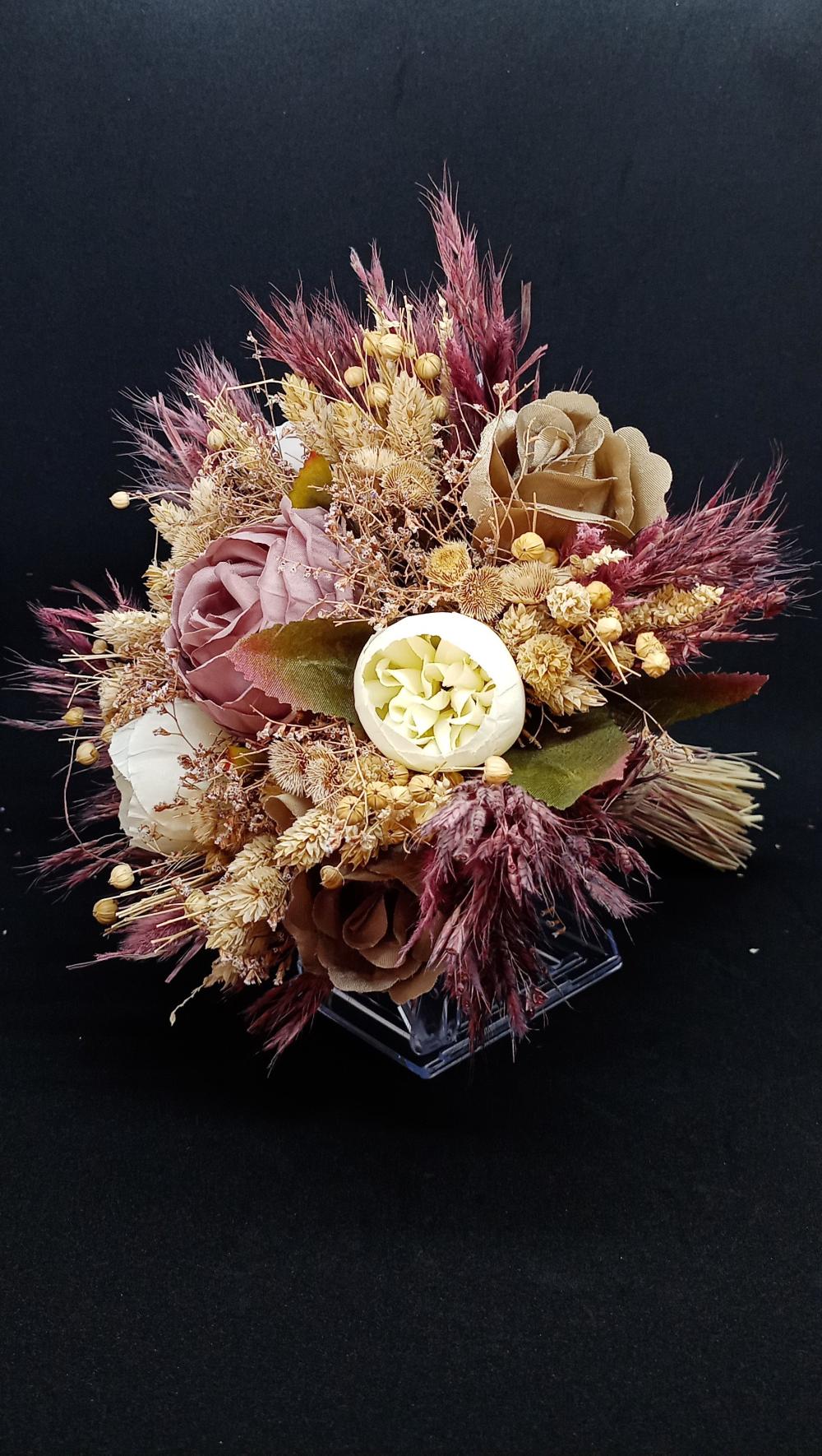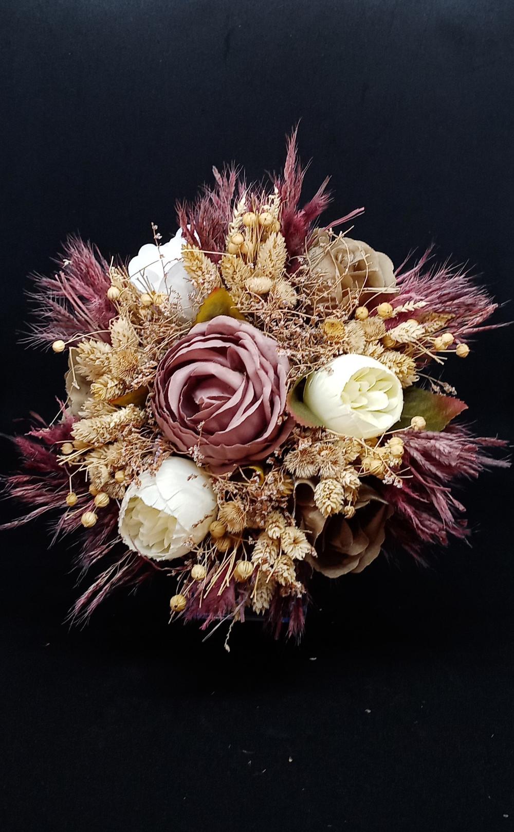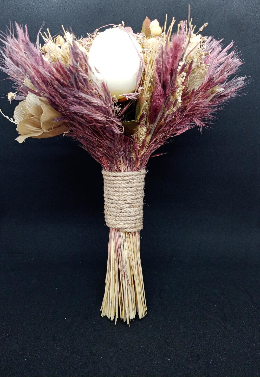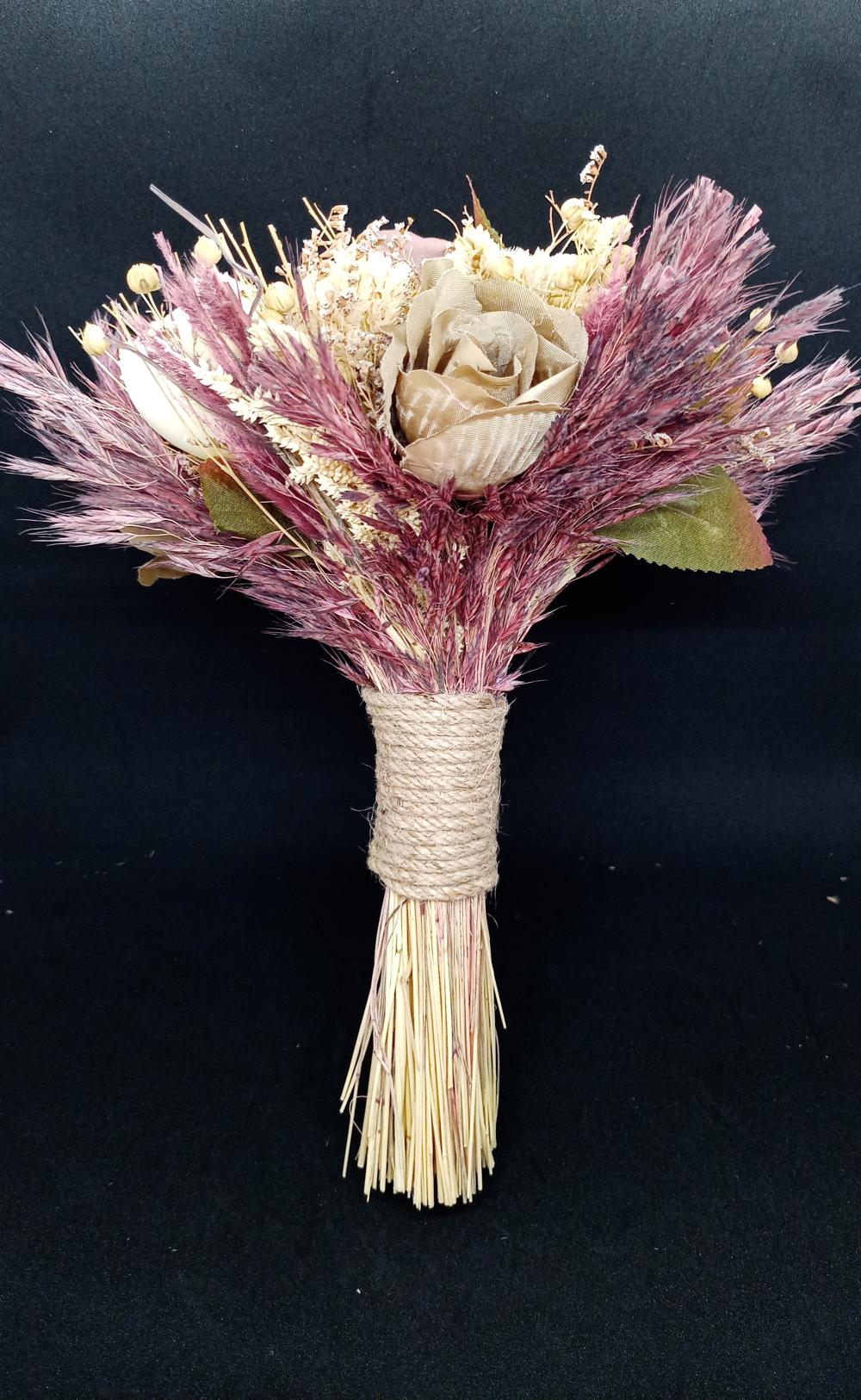 Gül Detaylı Mor Cipsolarla Süslenmiş Gelin Buketi
