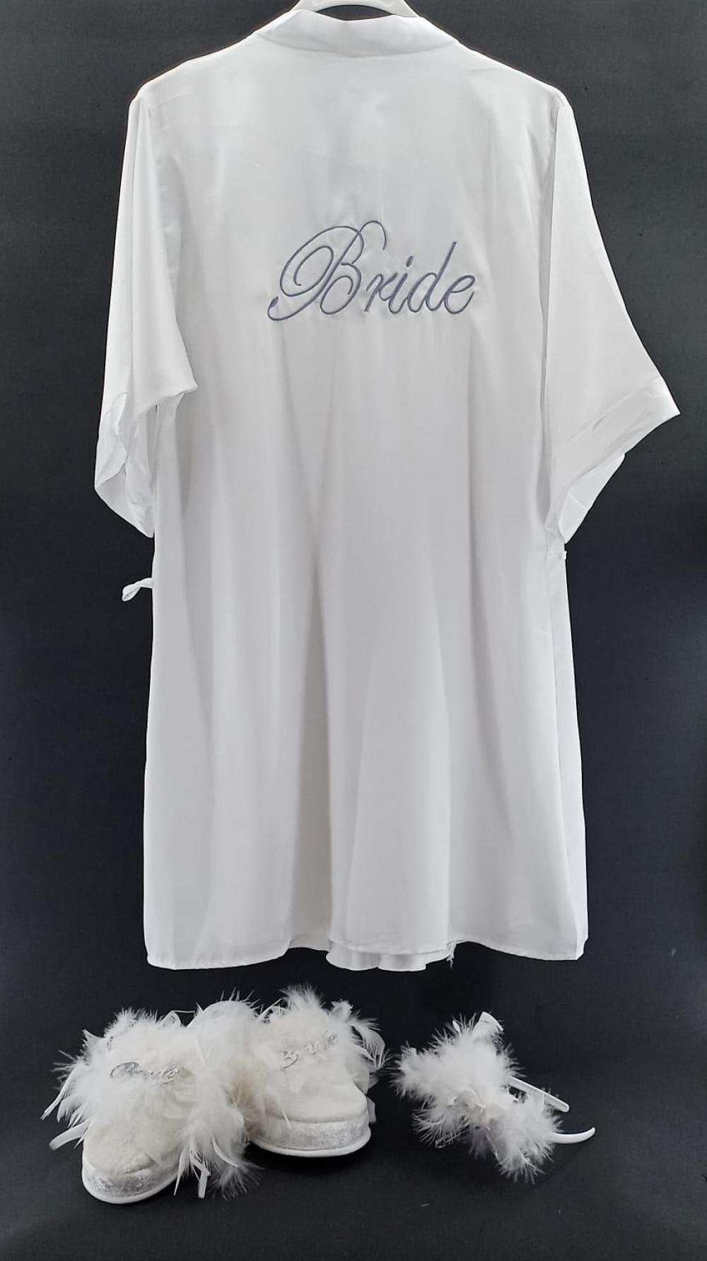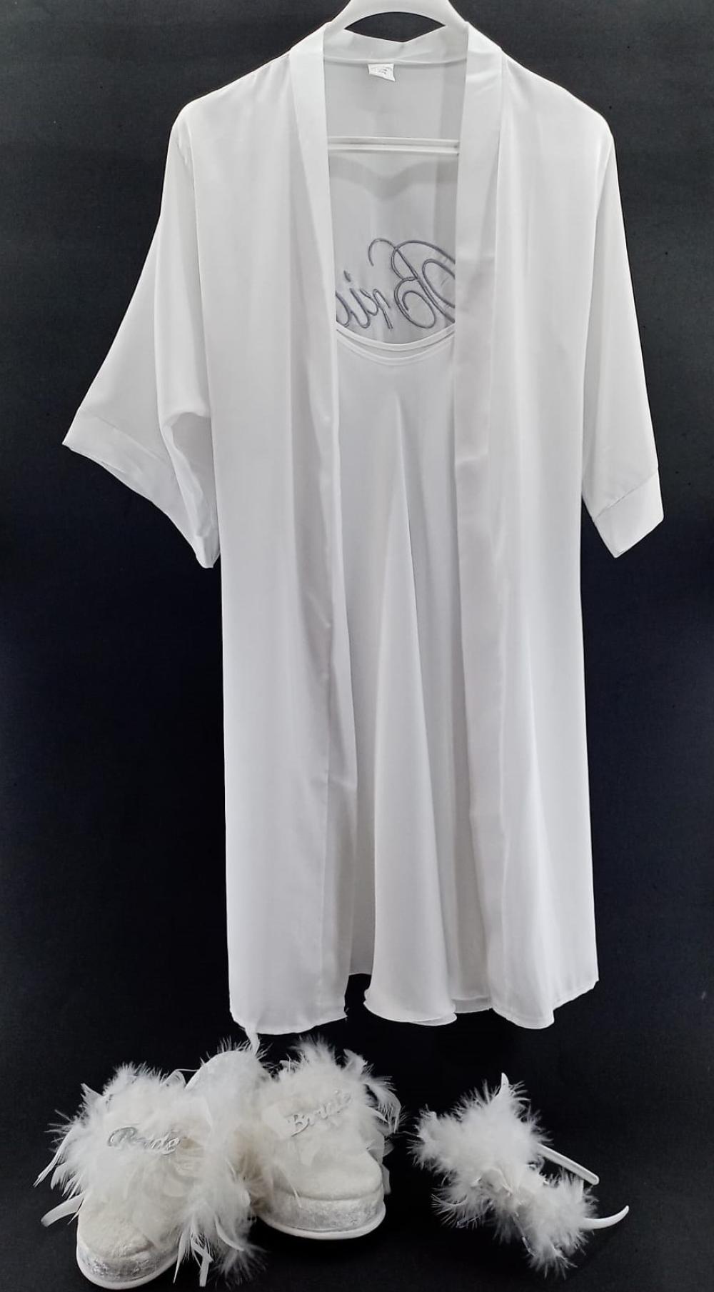 Gümüş İşlemeli Tüysüz Model Bride Sabahlık / Gecelik Tüylü Terlik Taç Seti