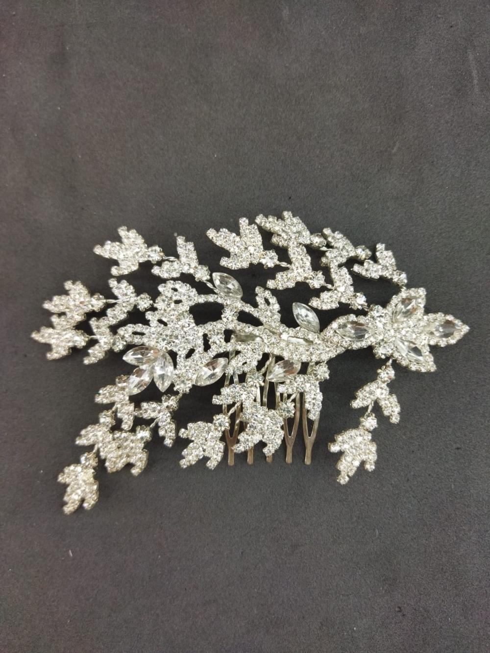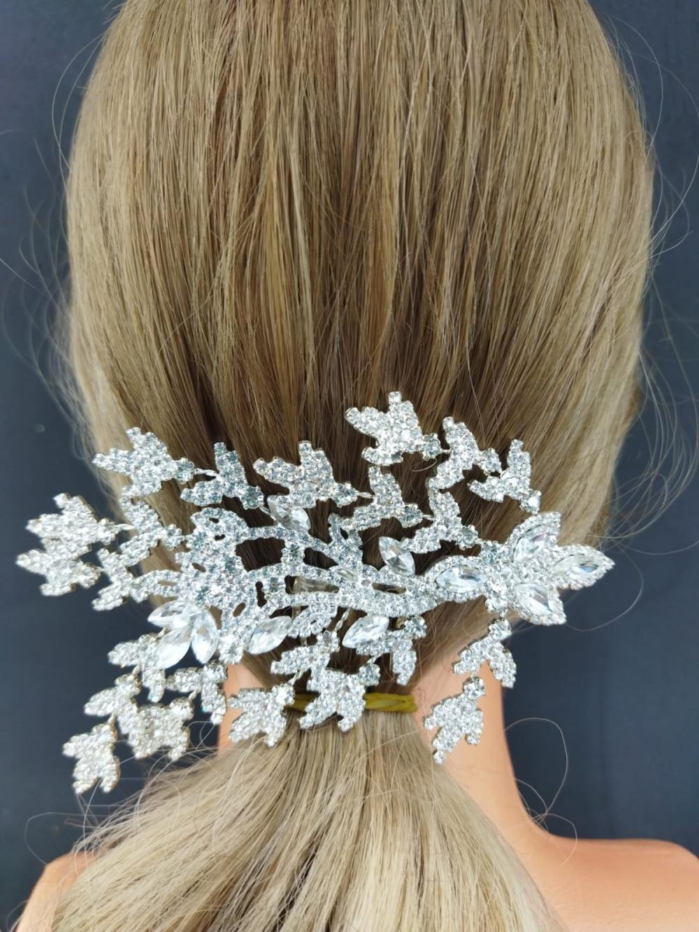 Gümüş Renk Taşlarla Süslenmiş Şık Gelin Saç Tokası