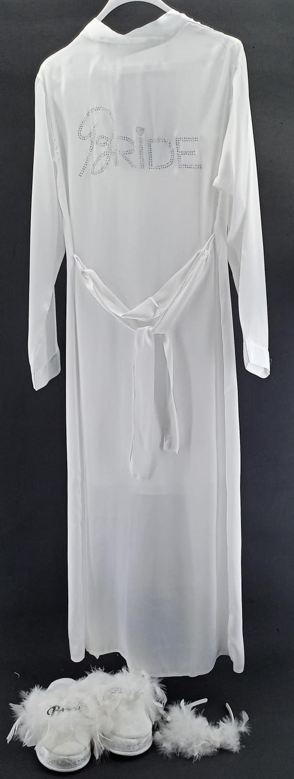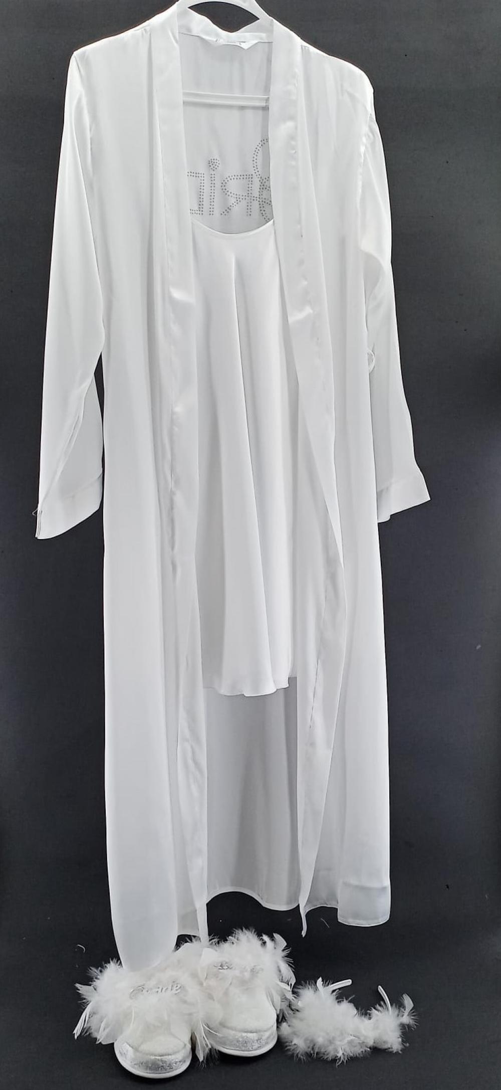 Gümüş Taşlı Tüysüz Uzun Model Bride Sabahlık / Gecelik Terlik Taç Seti