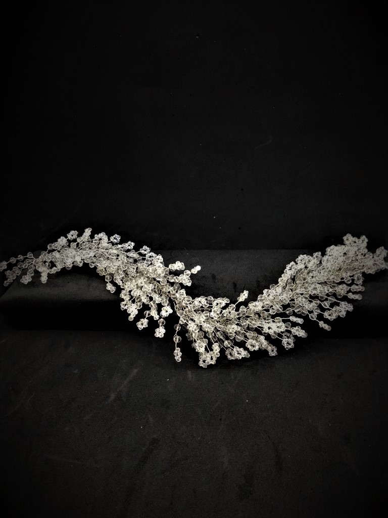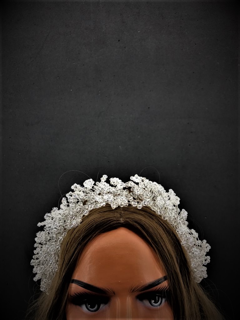 Helen Model Küçük Kristal Taşlardan Oluşan Modern Gelin Tacı