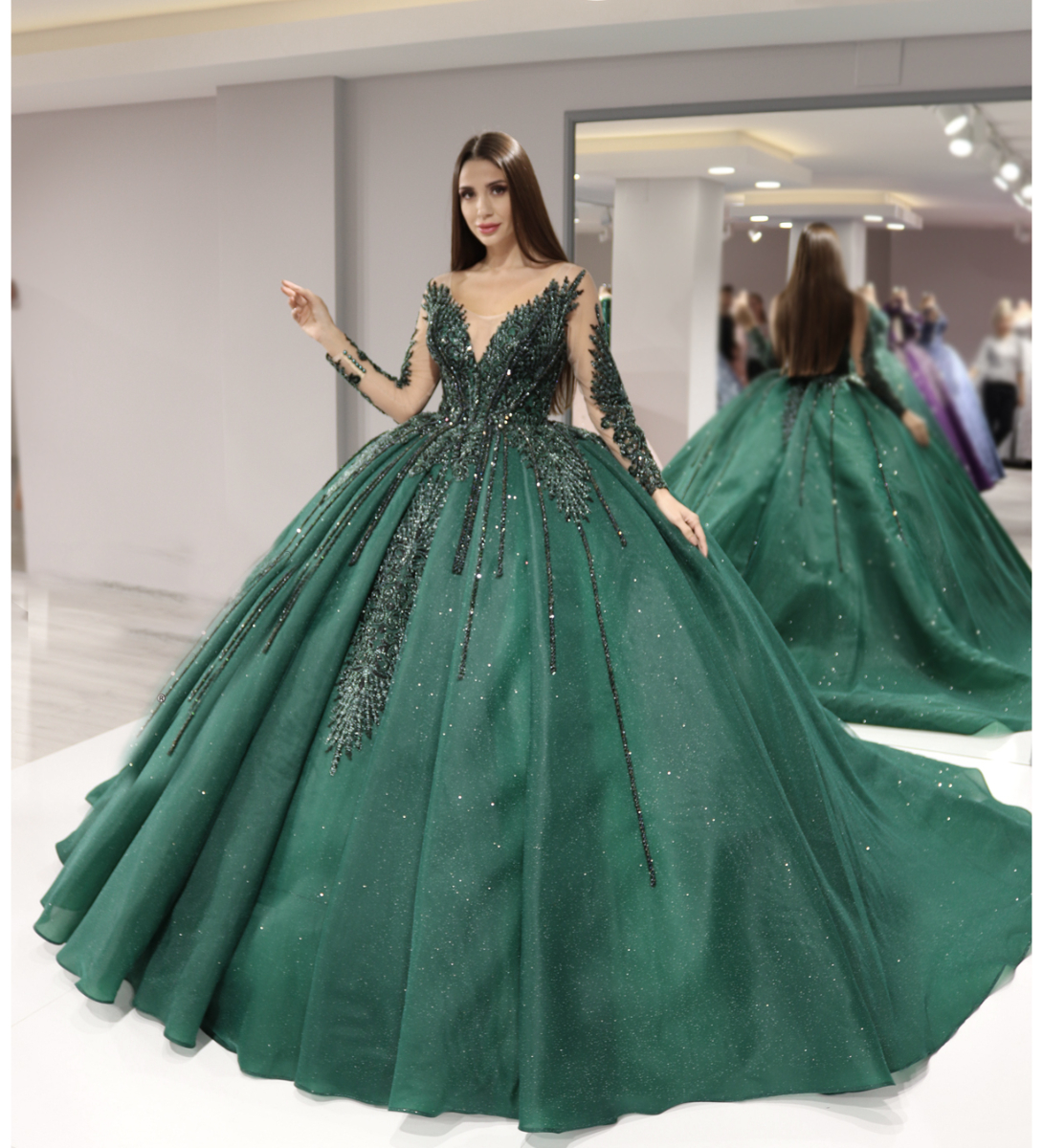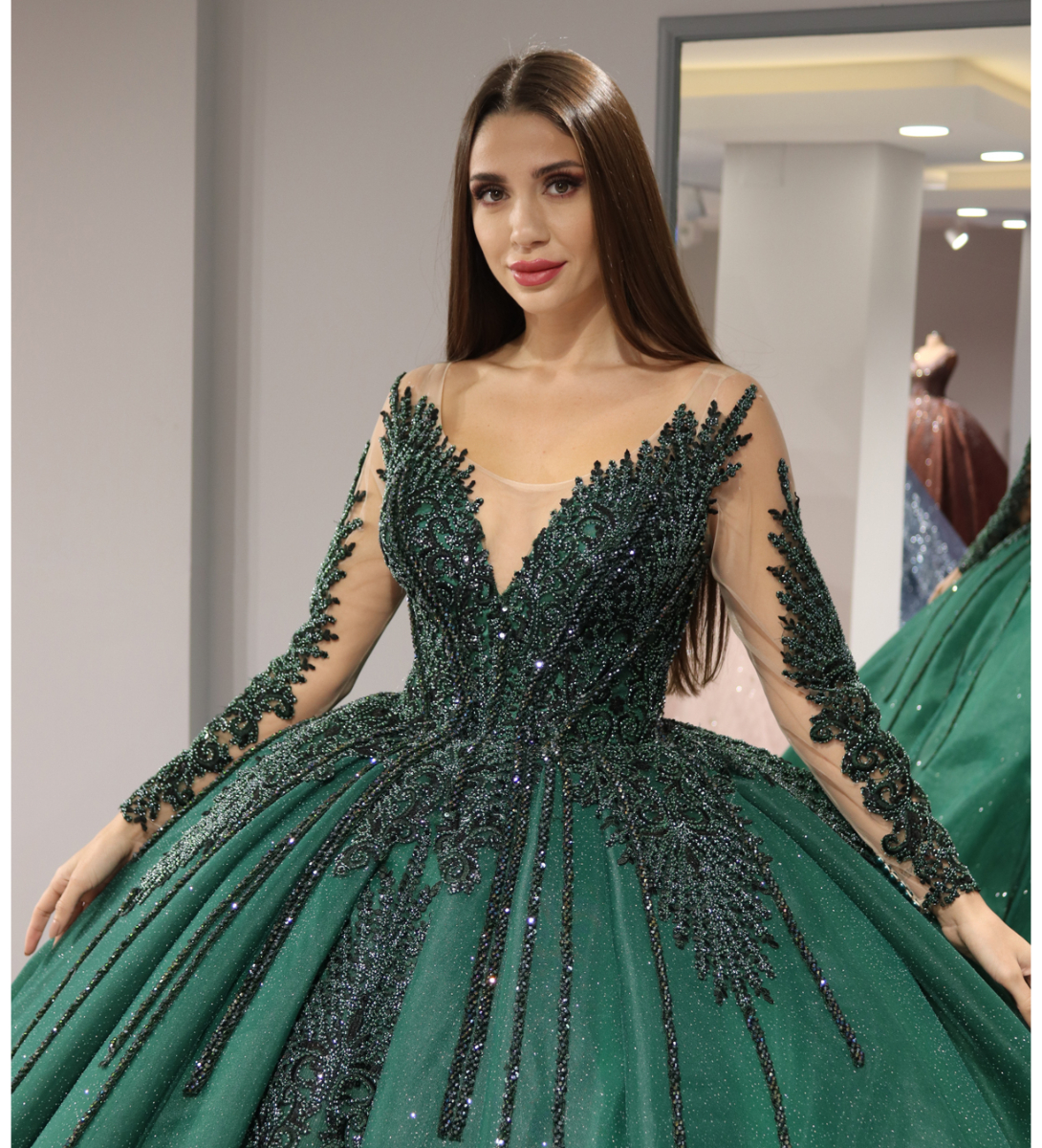 İllüzyon Yaka Detaylı Pileli Prenses Nişanlık