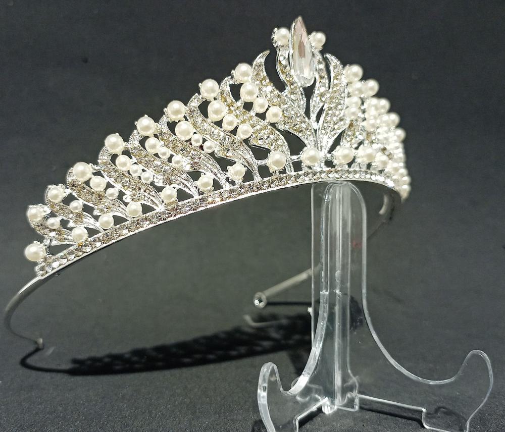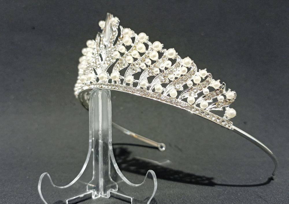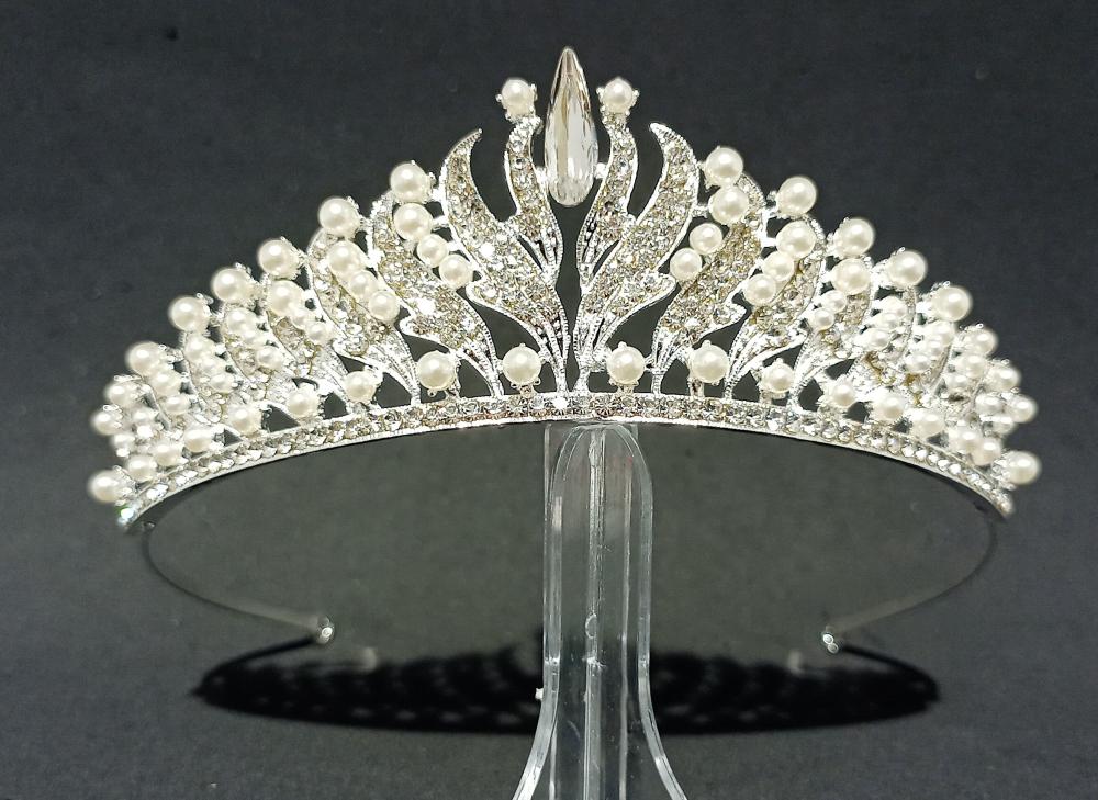 İnci Detayları Olan Kristal Model Gelin Tacı