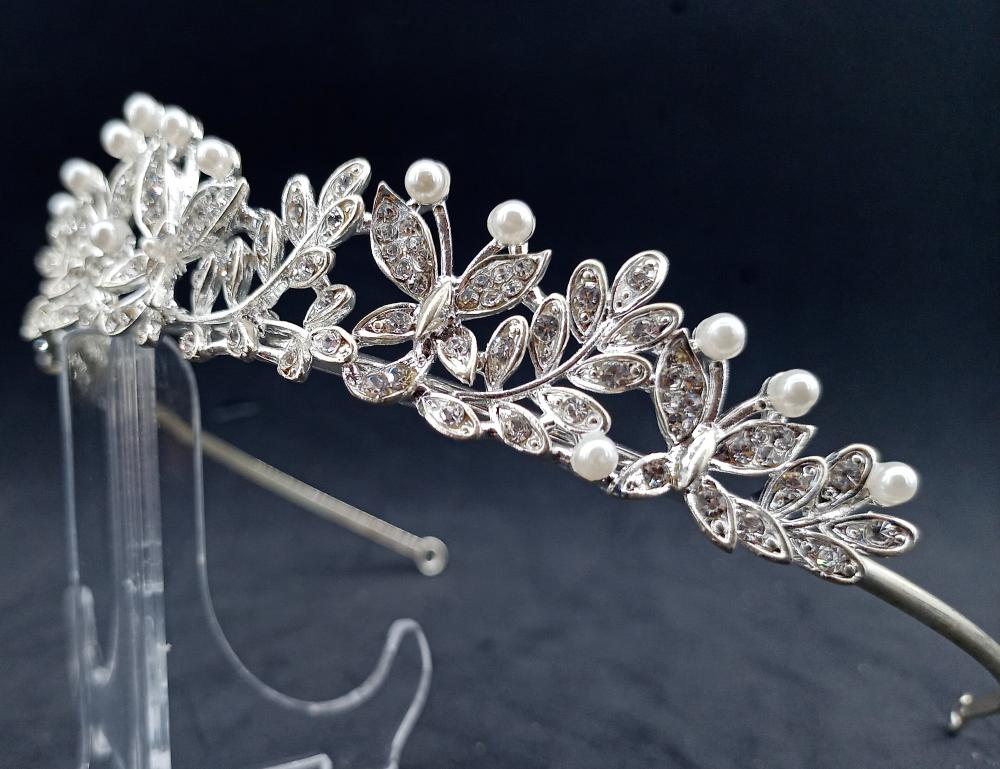 İnci Ve Kelebek Detaylı Gelin Tacı