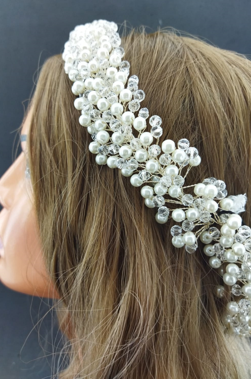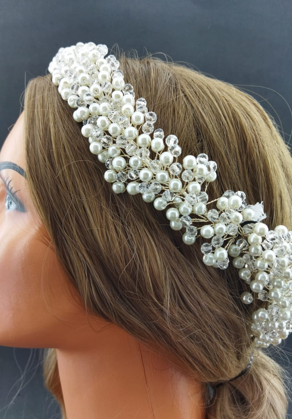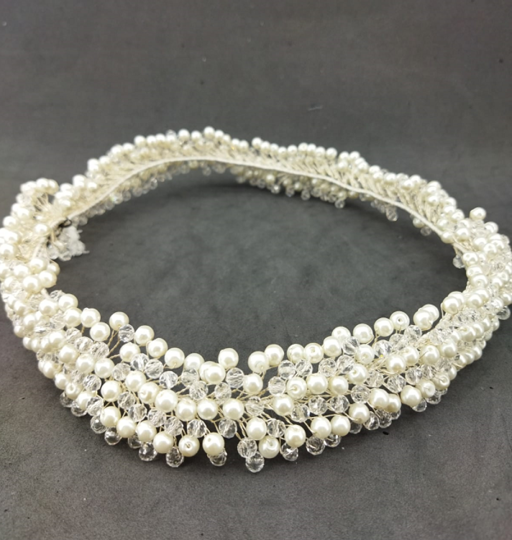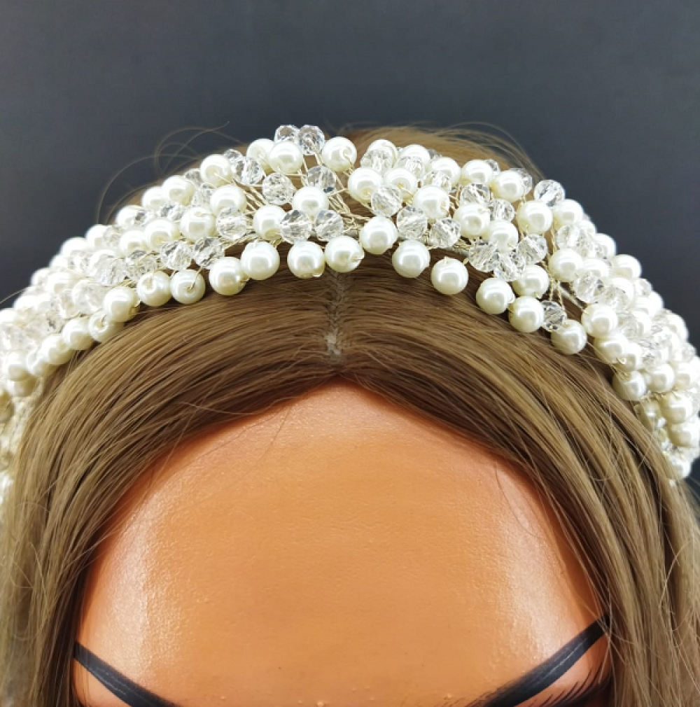İnci Ve Kristallerle Süslenmiş Şık Gelin Tacı