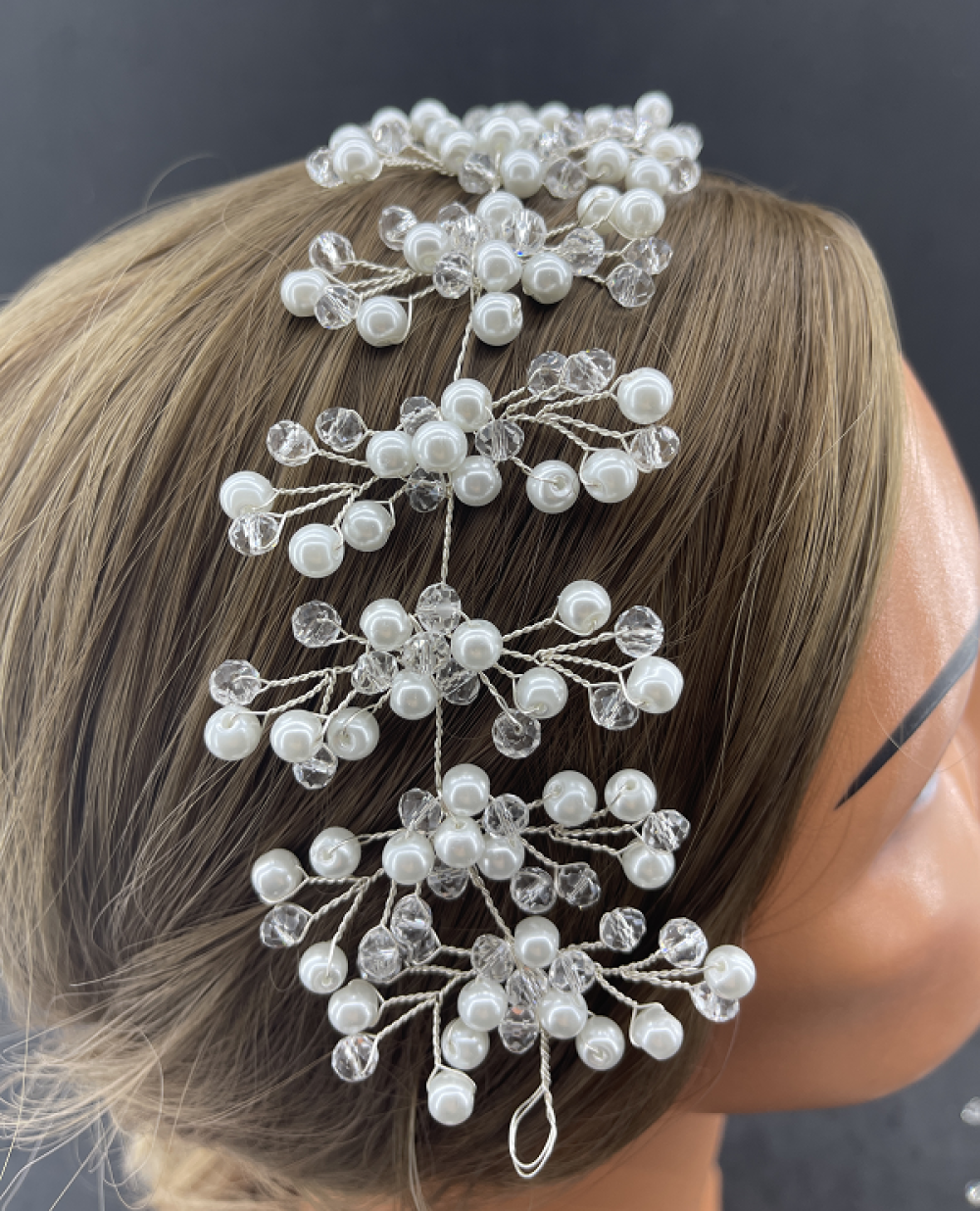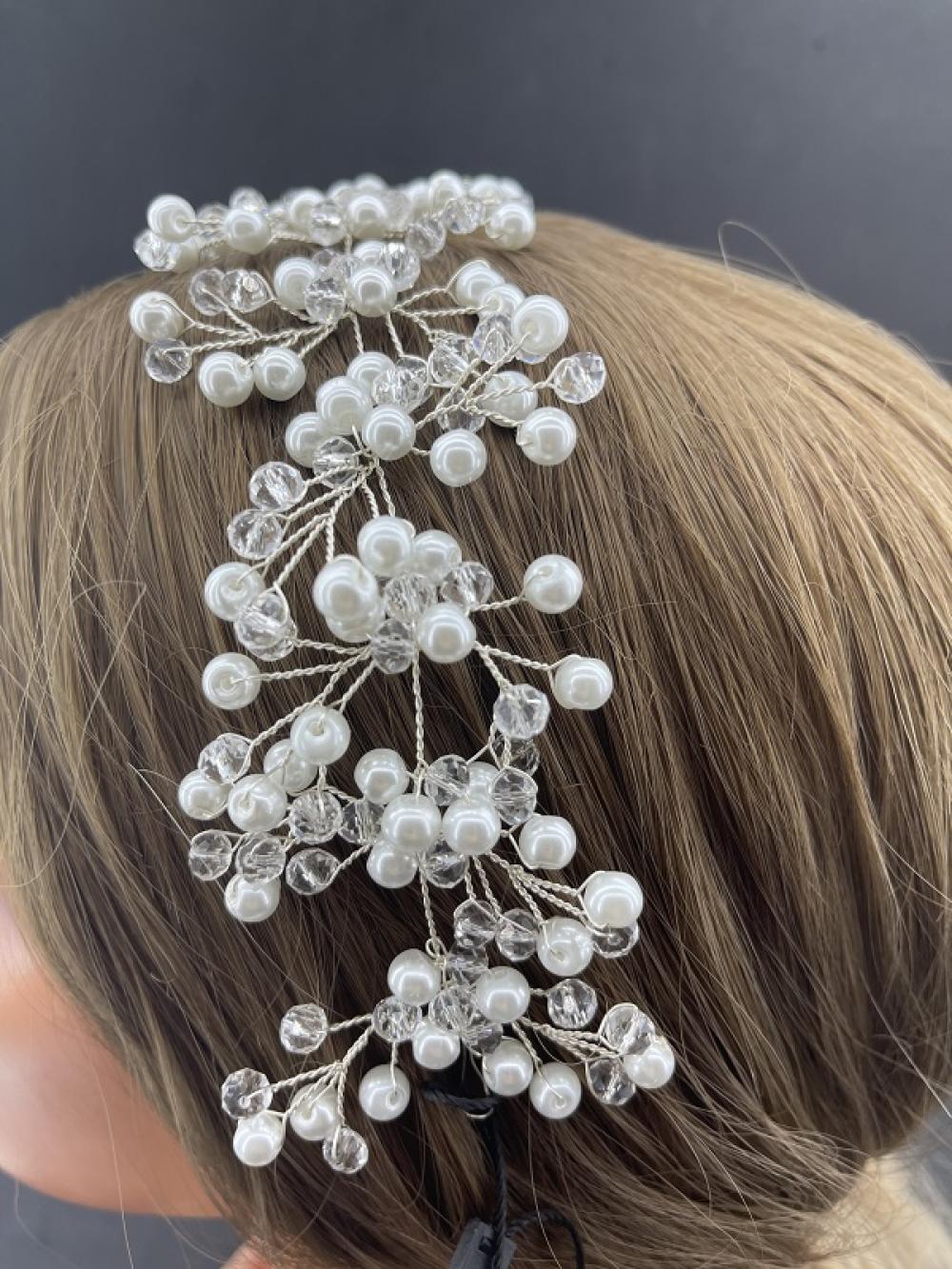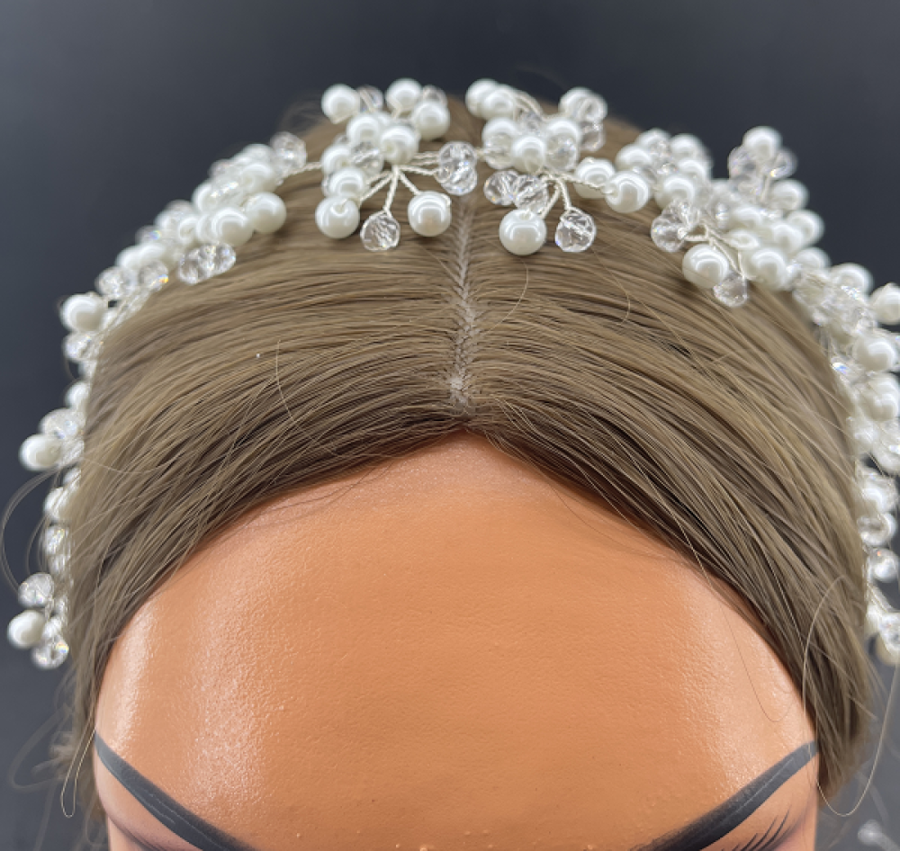 İnci Ve Kristallerle Süslenmiş Zarif Gelin Tacı