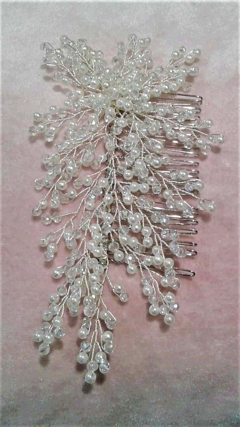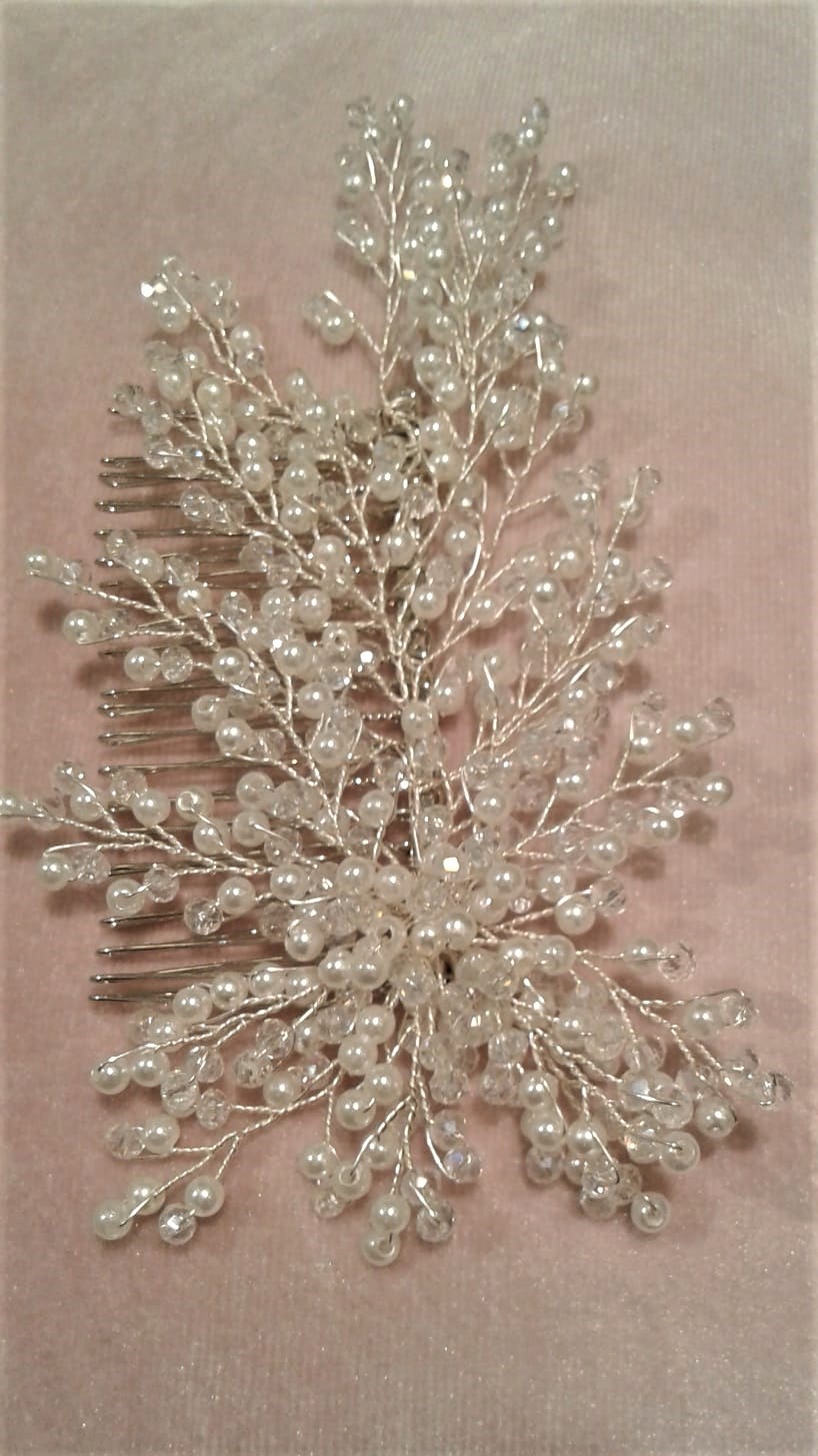İnci Ve Serpme Kristallerden İşlenmiş Gelin Tokası