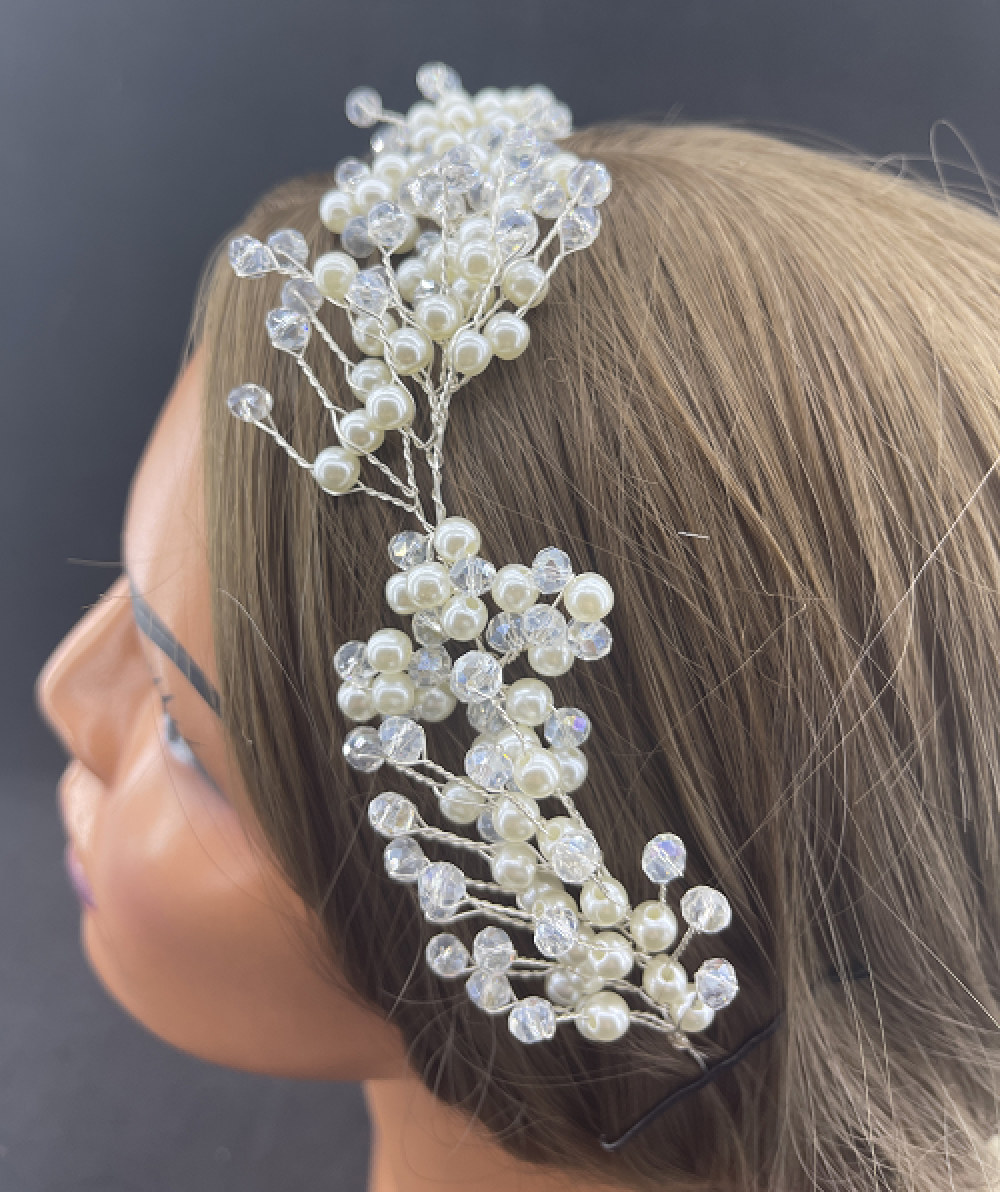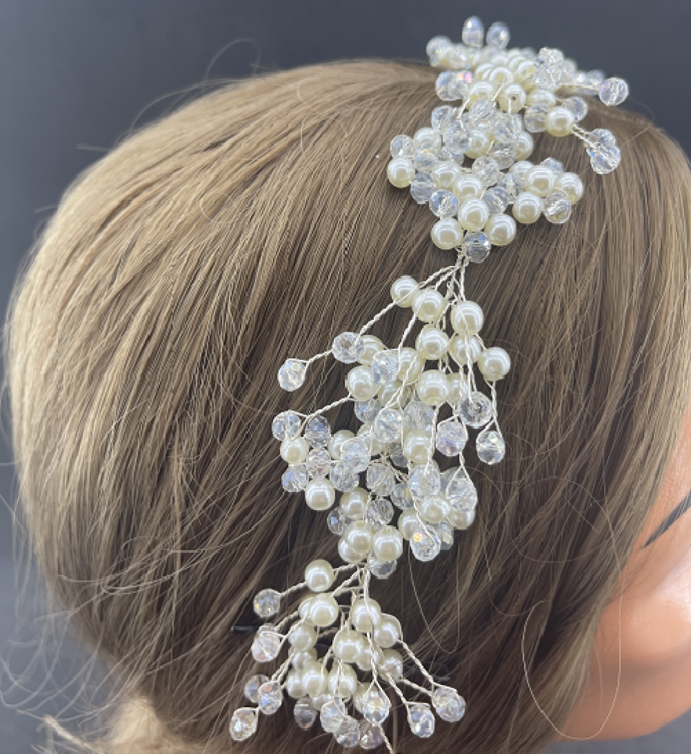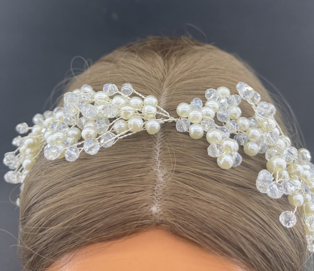 İnci Ve Top Kristallerle Süslenmiş Gelin Tacı