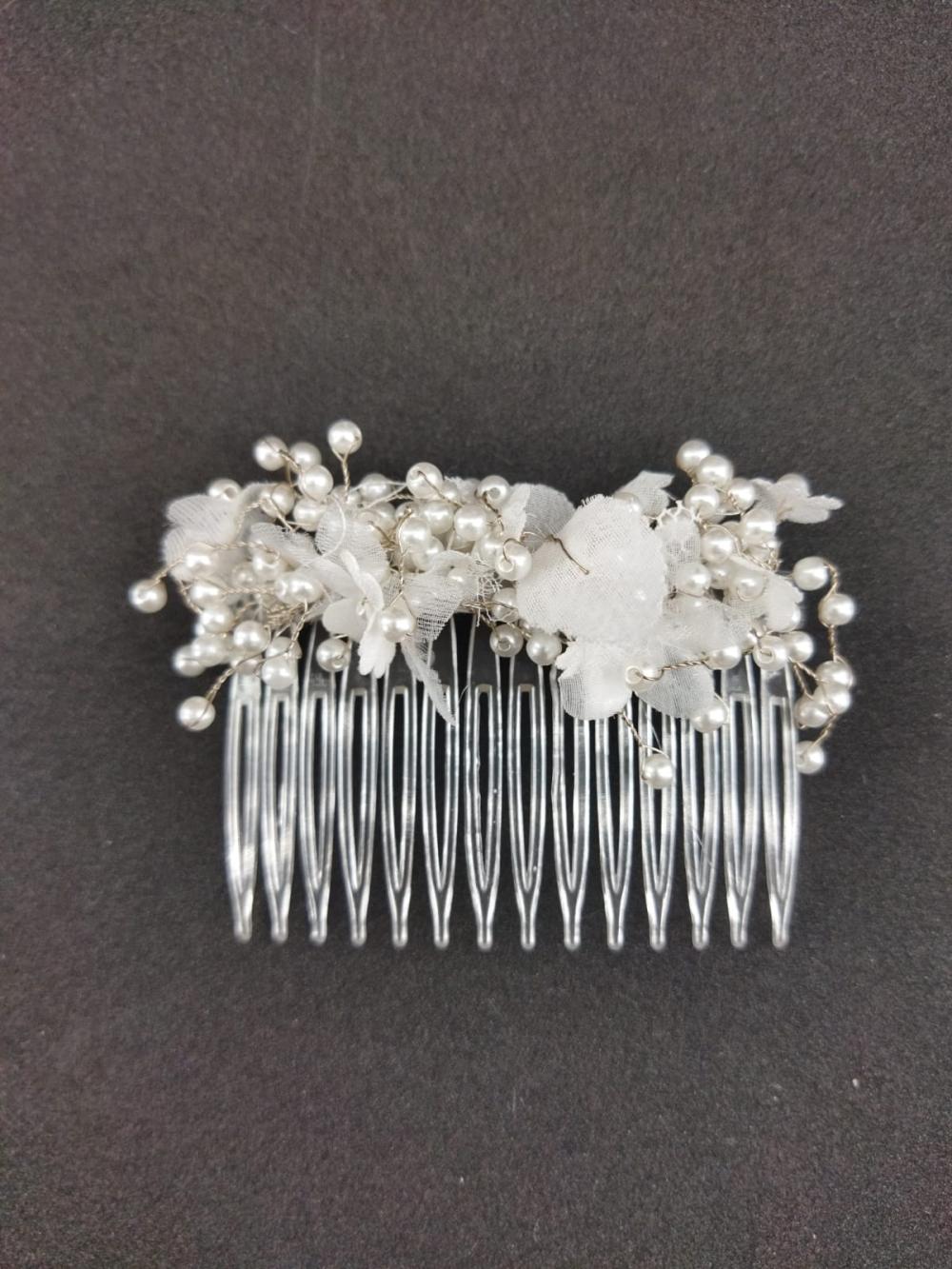 İnci Ve Tül Detaylı Gelin Saç Tokası
