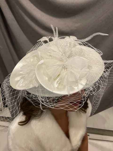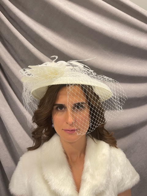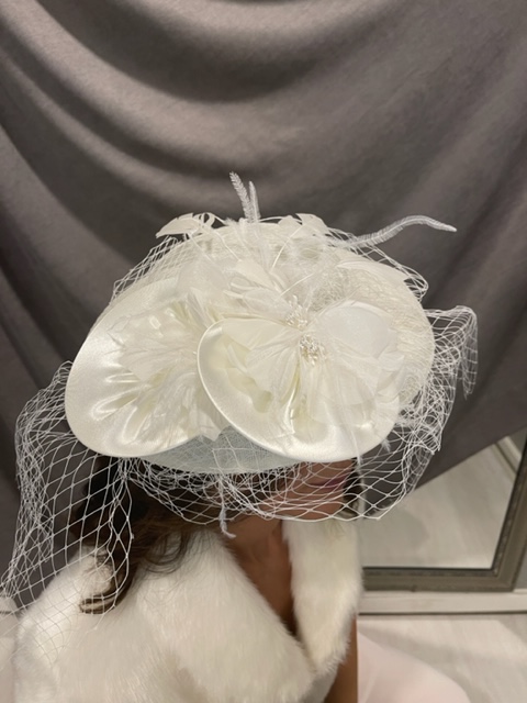 İngiliz Model Beyaz Çiçek İşlemeli File Detaylı Şık Şapka Vualet Nikah Kepi