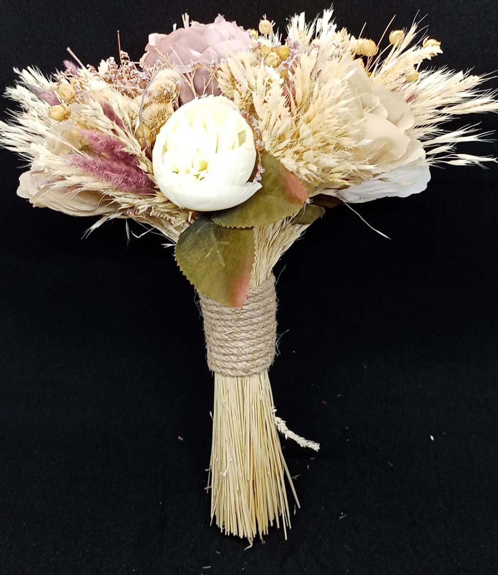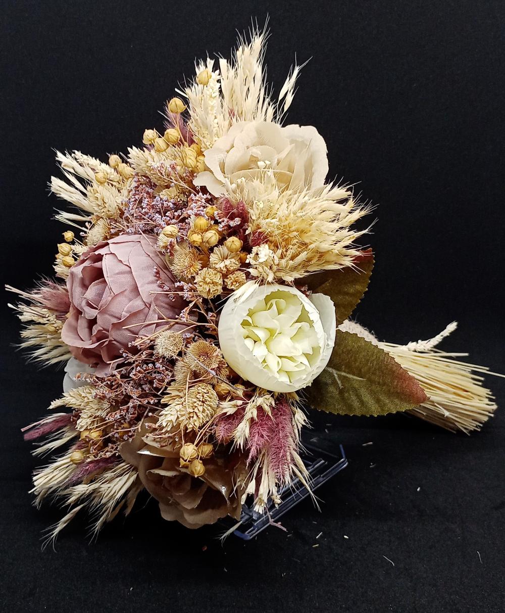Kahve Beyaz Ve Pembe Renkli Güllerden Oluşan Gelin Buketi