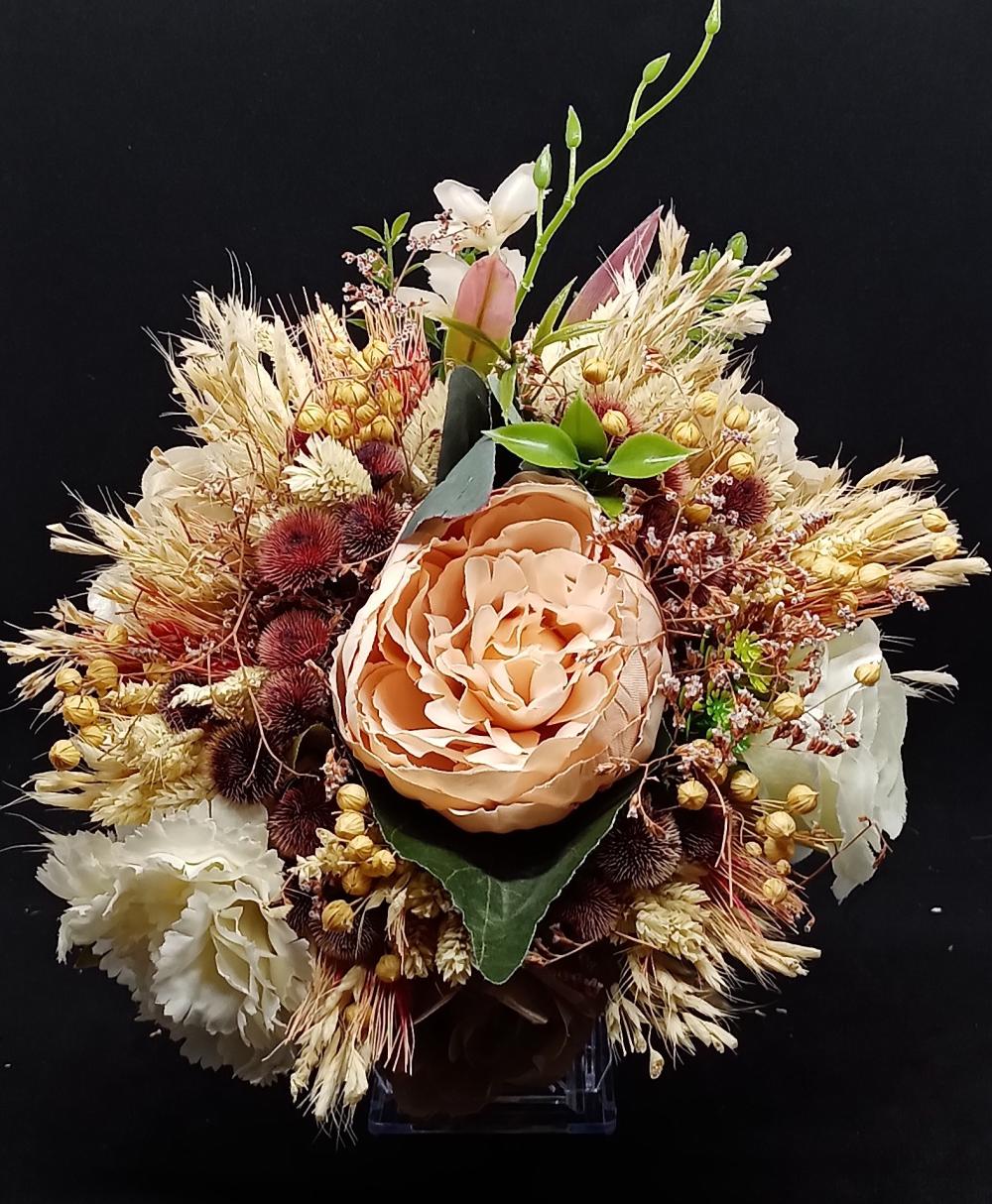 Kahve Tonlarında Pembe Beyaz Aranjman Gelin Buketi