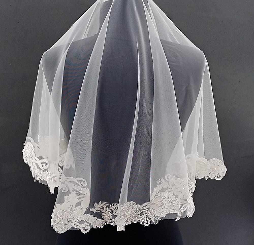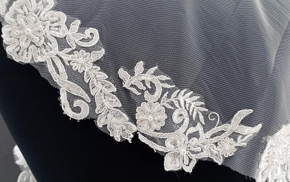 Kenarları Aplike Dantel Ve İnci İşlemeli Gelin Örtüsü