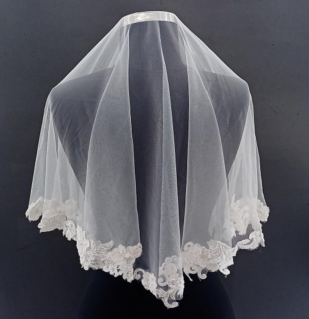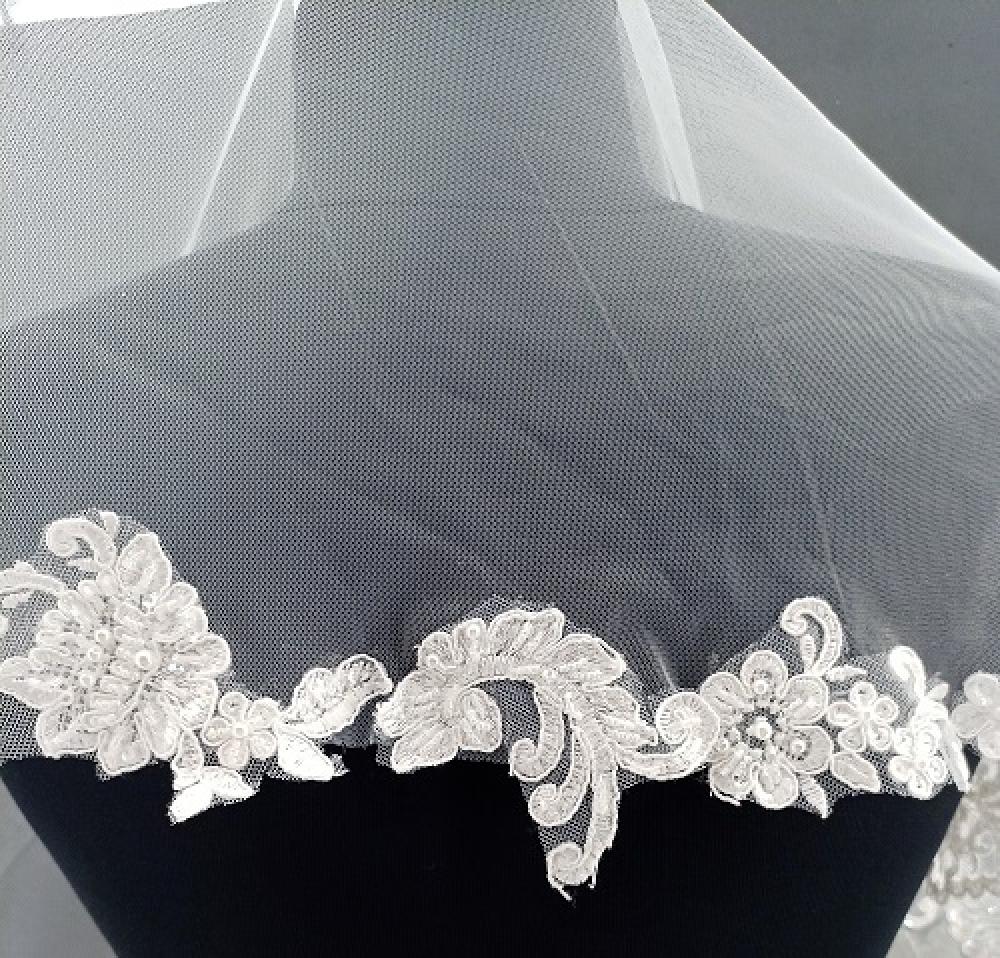 Kenarları İncili Papatya Dantel Detaylı Gelin Örtüsü