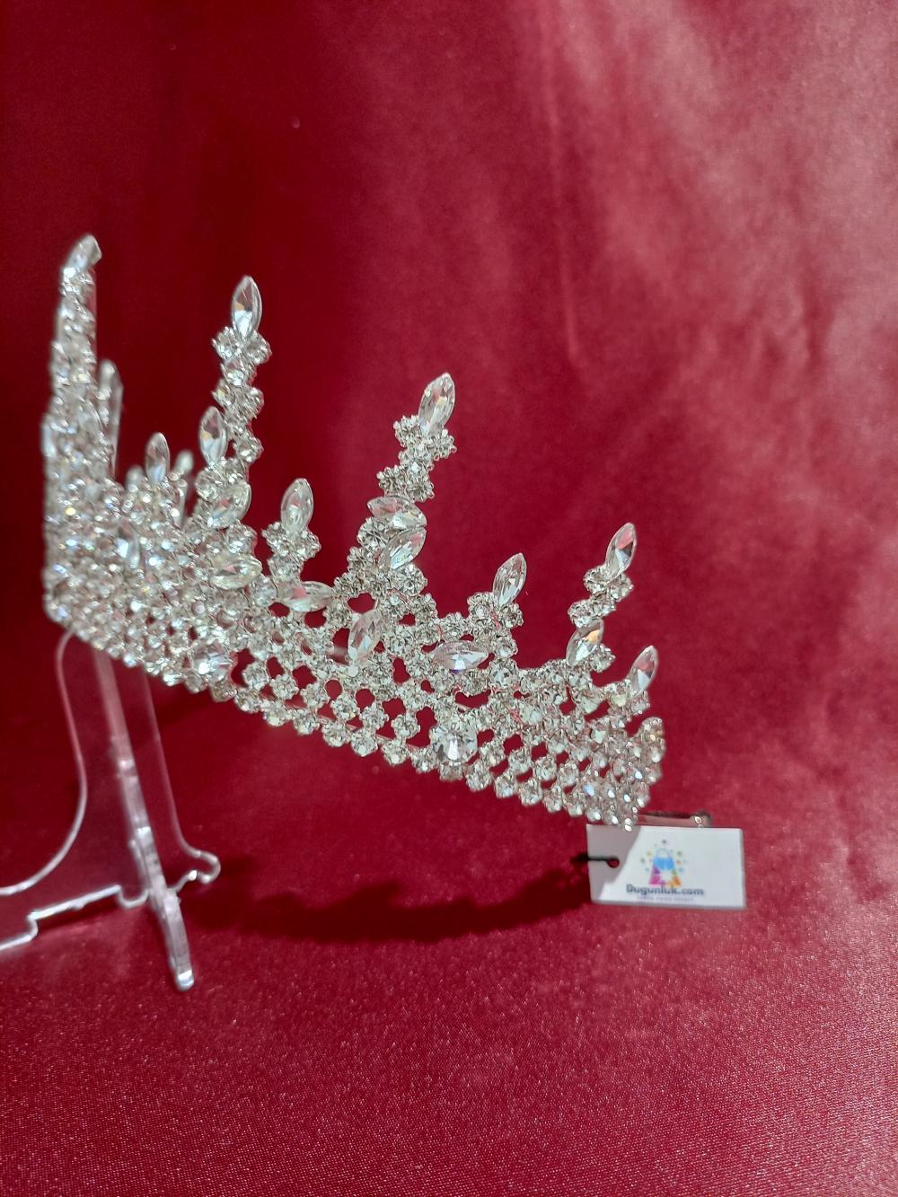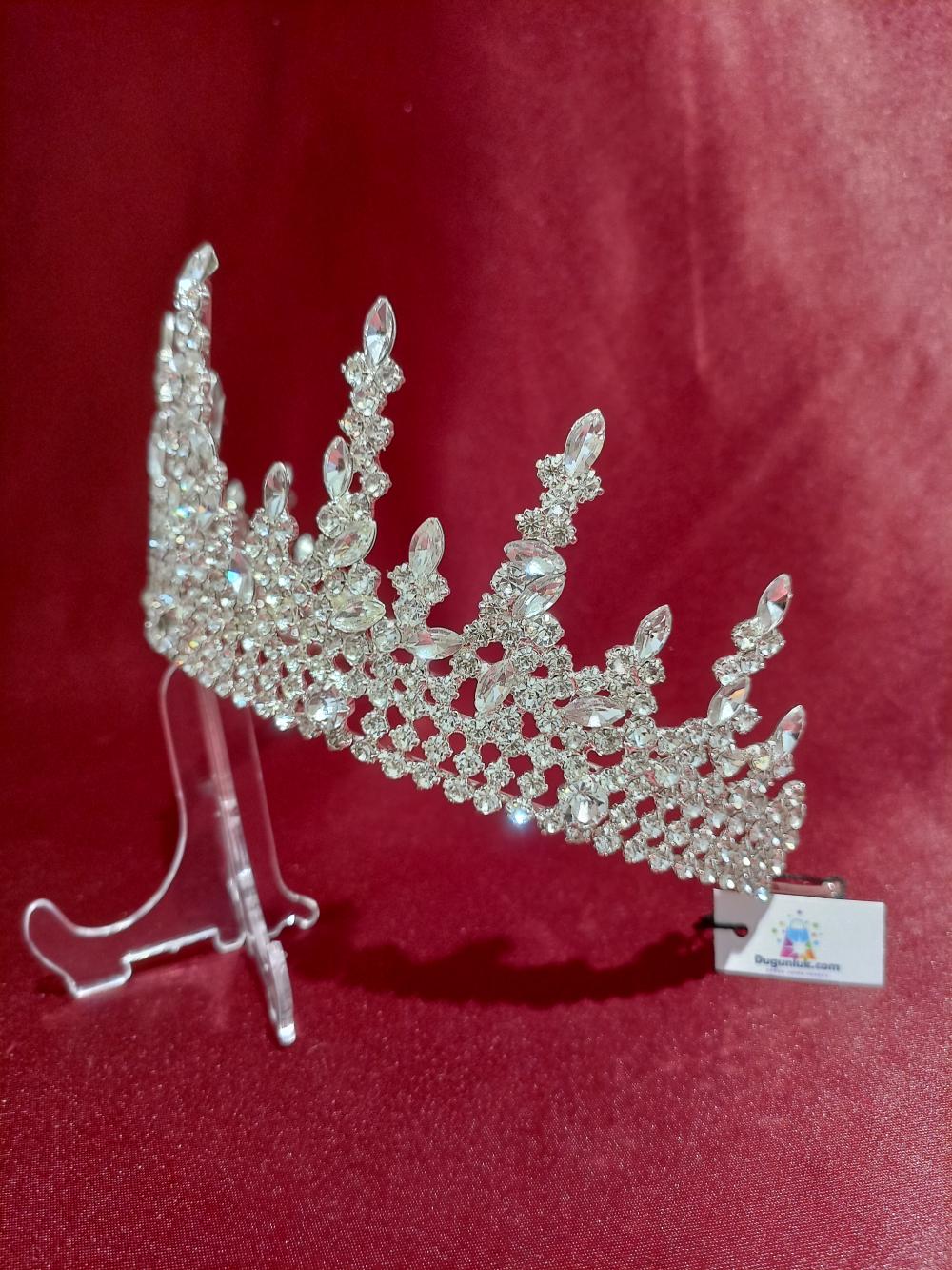 Keskin Çıkışları Olan Kristal Taşlardan Oluşan Prenses Gelin Tacı.