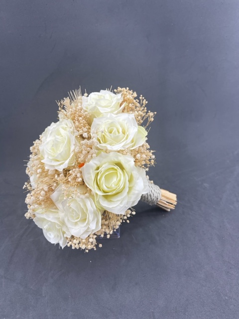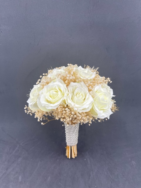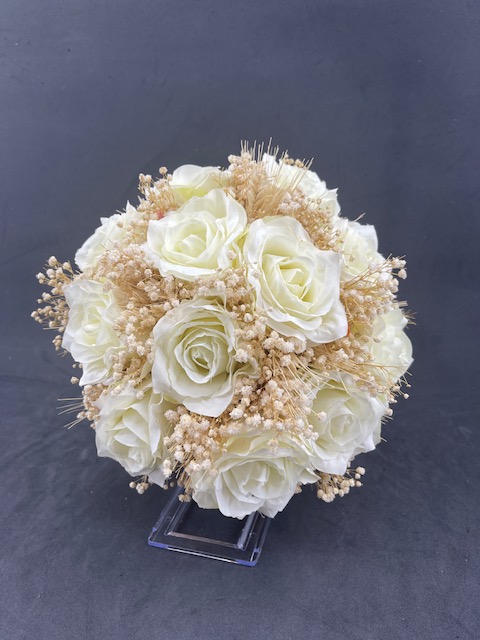 Kırık Beyaz - Krem Çövenlerle Süslü Şık Gül Gelin Buketi