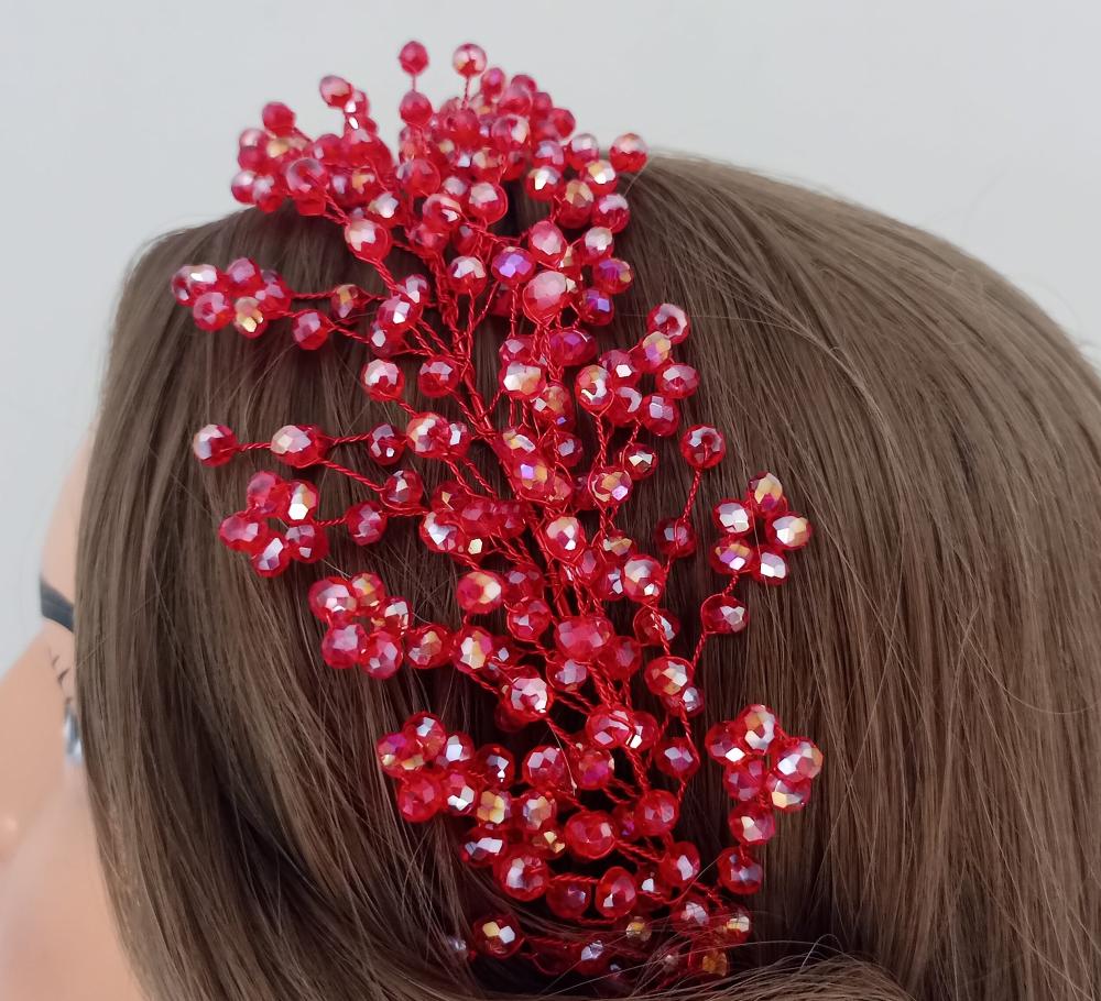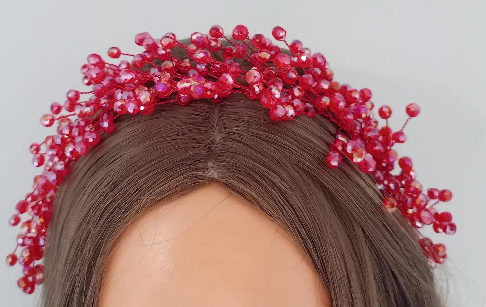 Kırmızı Boncuk Kristallerle Süslenmiş Kına Tacı