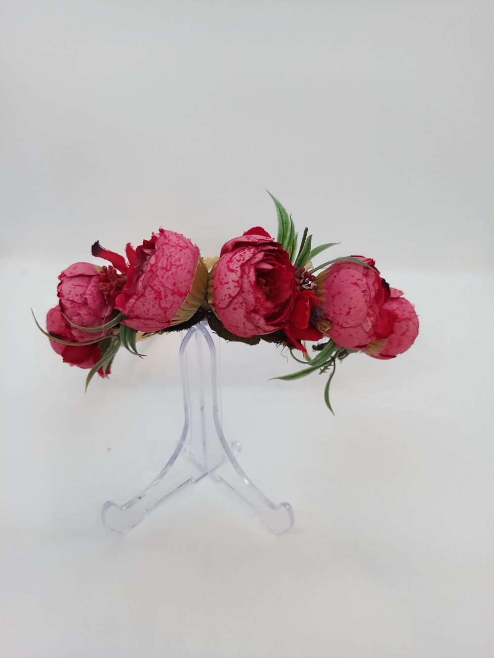 Yapay güllerle oluşturulmuş çiçekli taç.