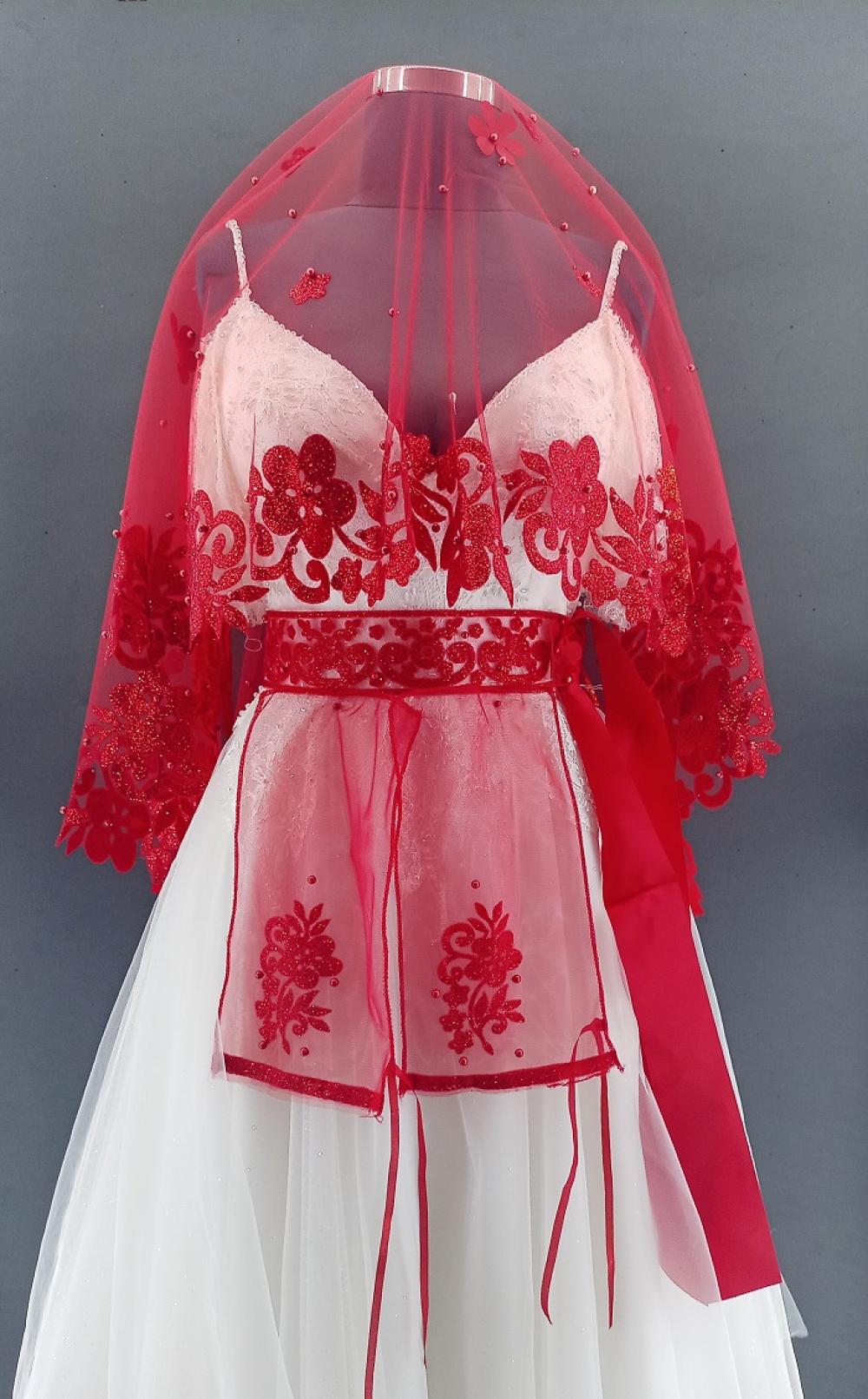 Kırmızı İnci Detaylı Simlere Sahip Kına Örtüsü Seti