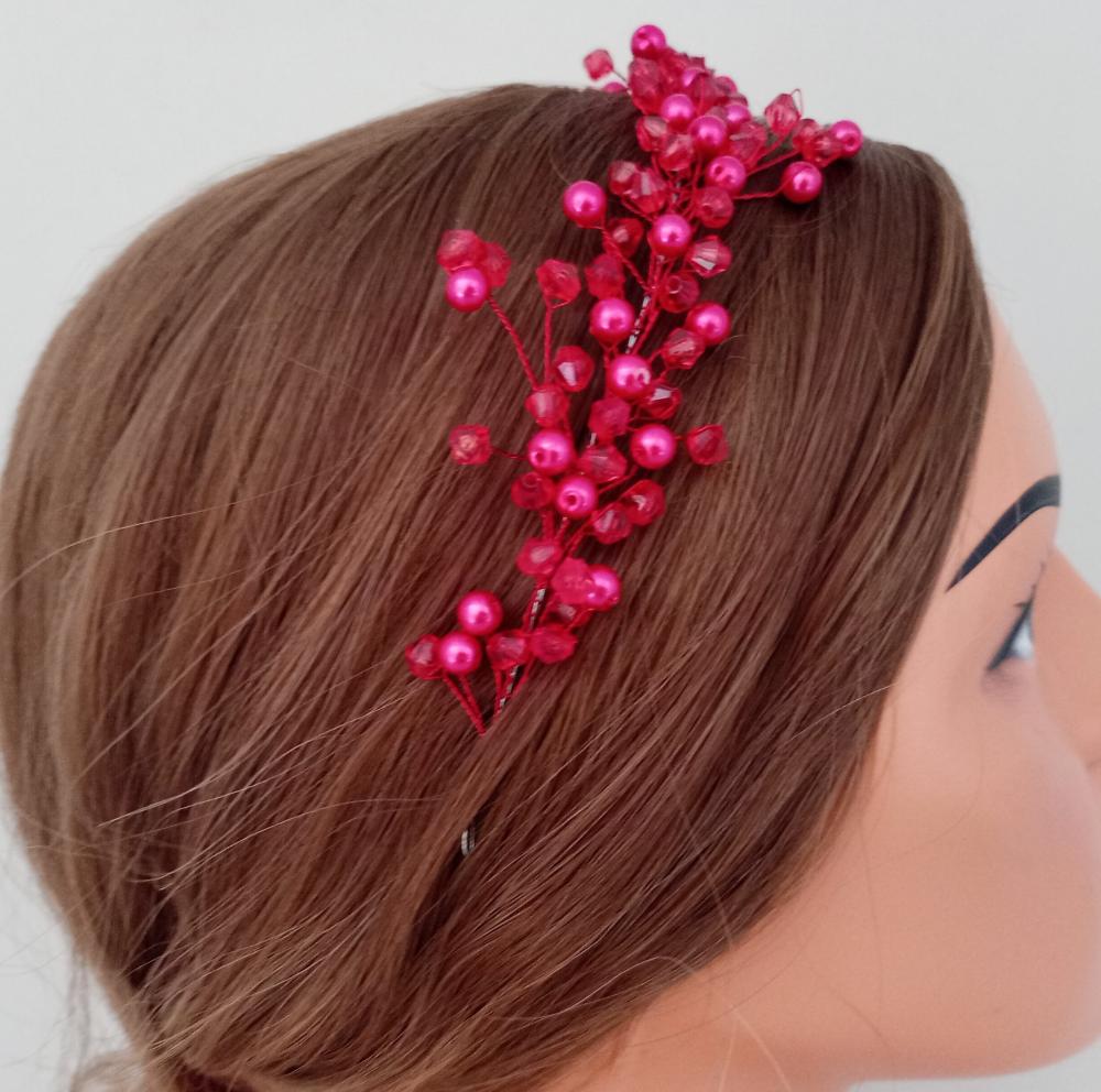 Kırmızı İnci Ve Kristallerden Oluşan Kına Tacı