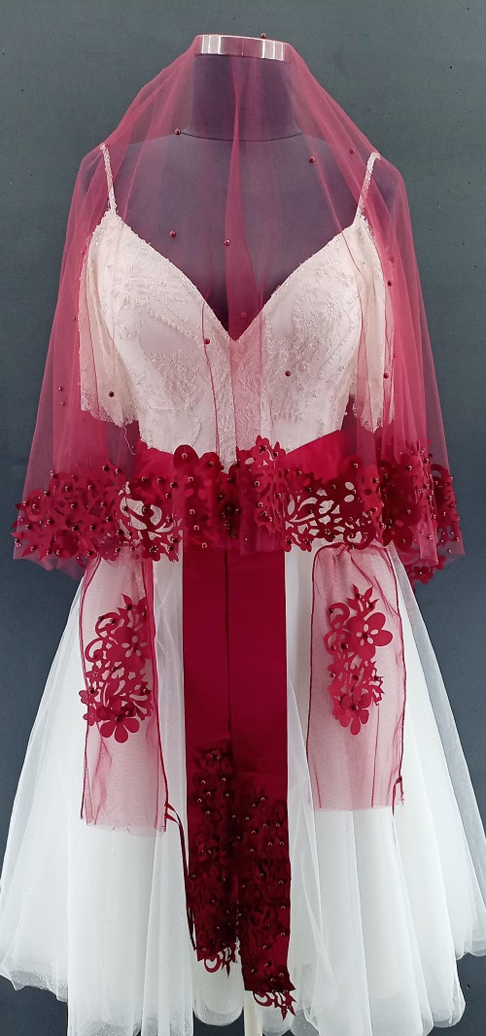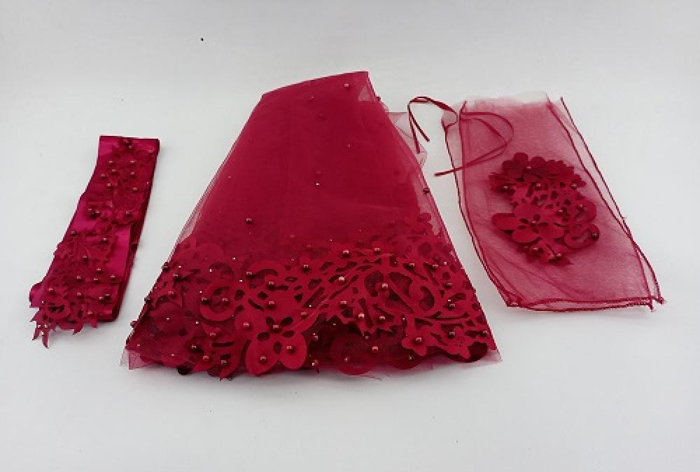 Kırmızı İncilerle Süslenmiş Kına Örtüsü Seti
