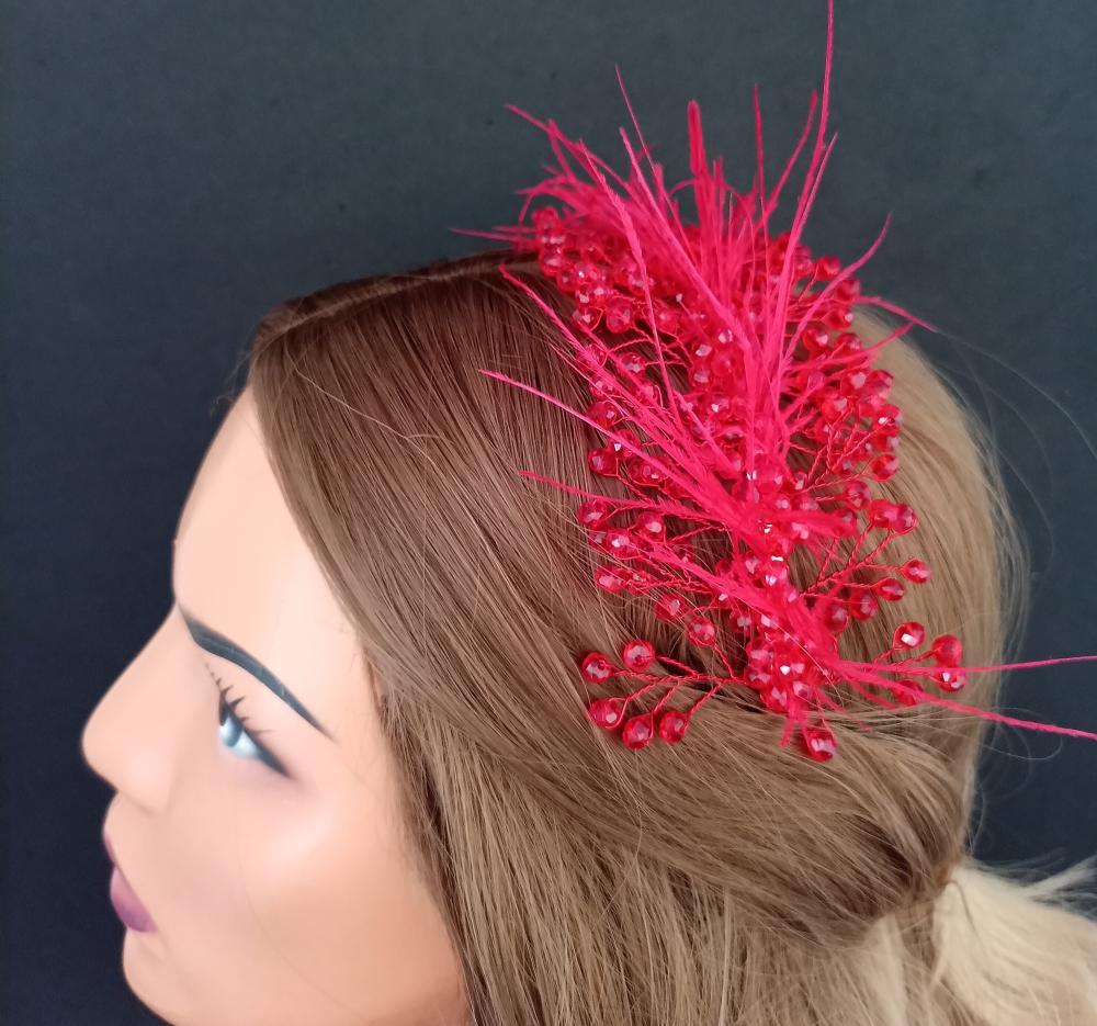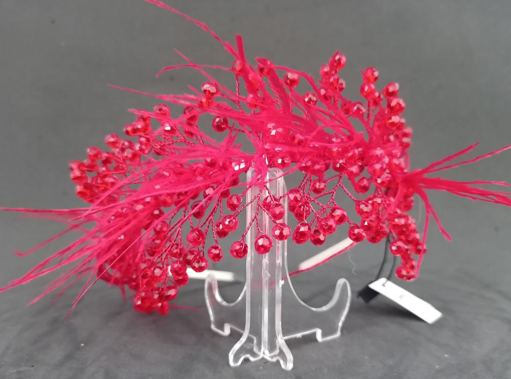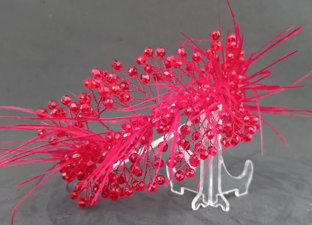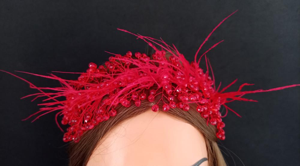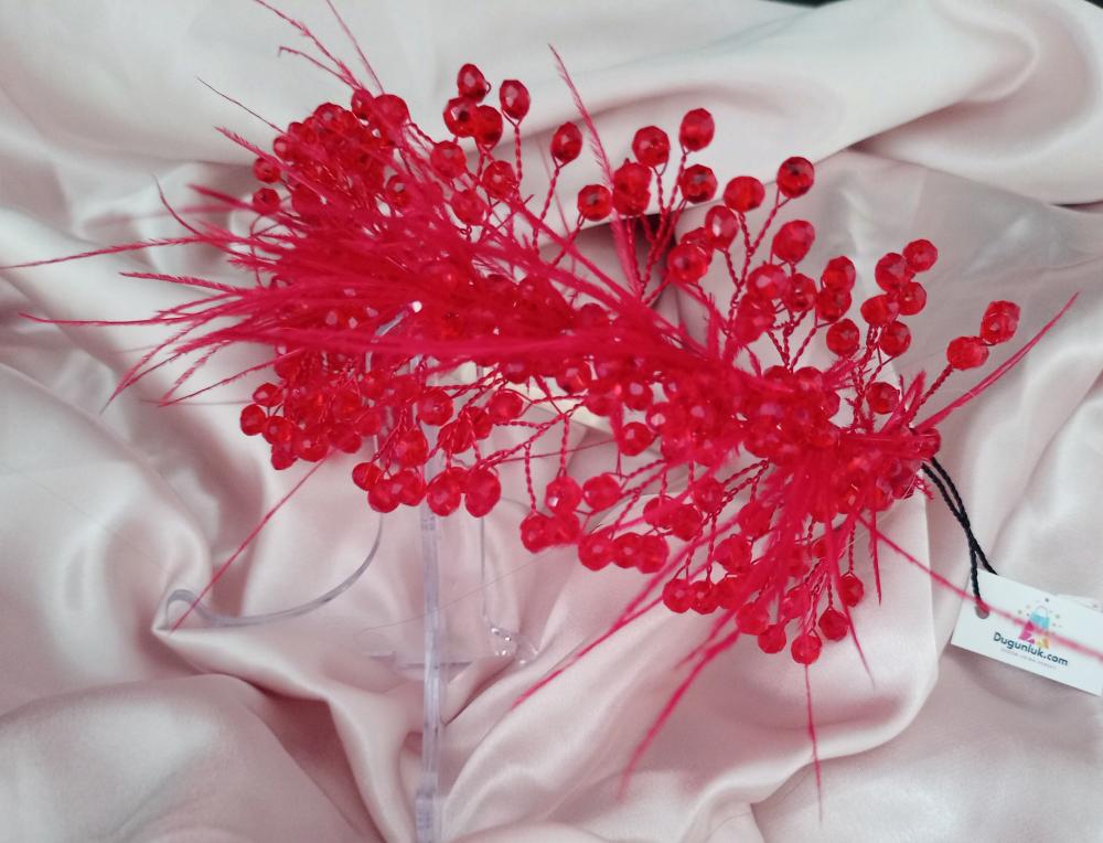 Kırmızı Kristal Ve Tüylerden Oluşan Kına Tacı