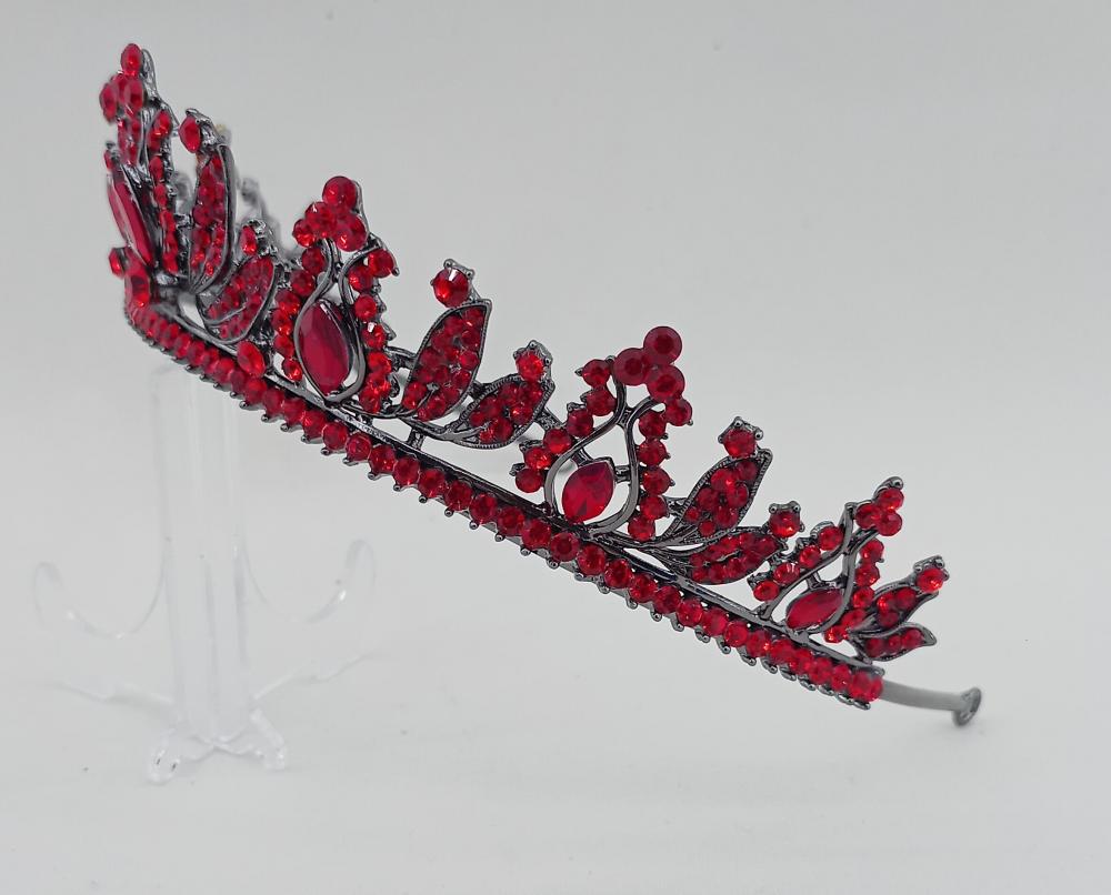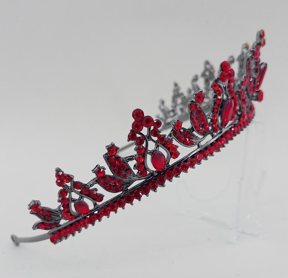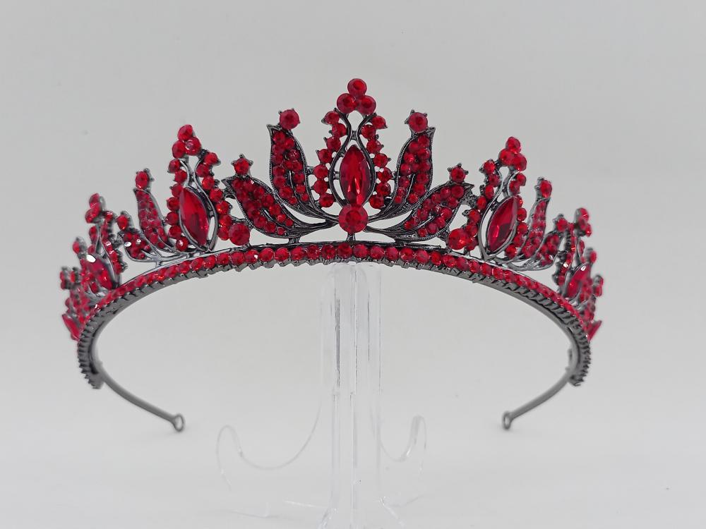 Kırmızı Kristallerden Oluşan Lale Gelin Kına Tacı